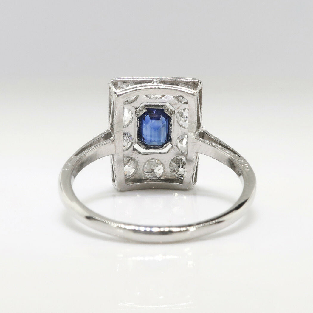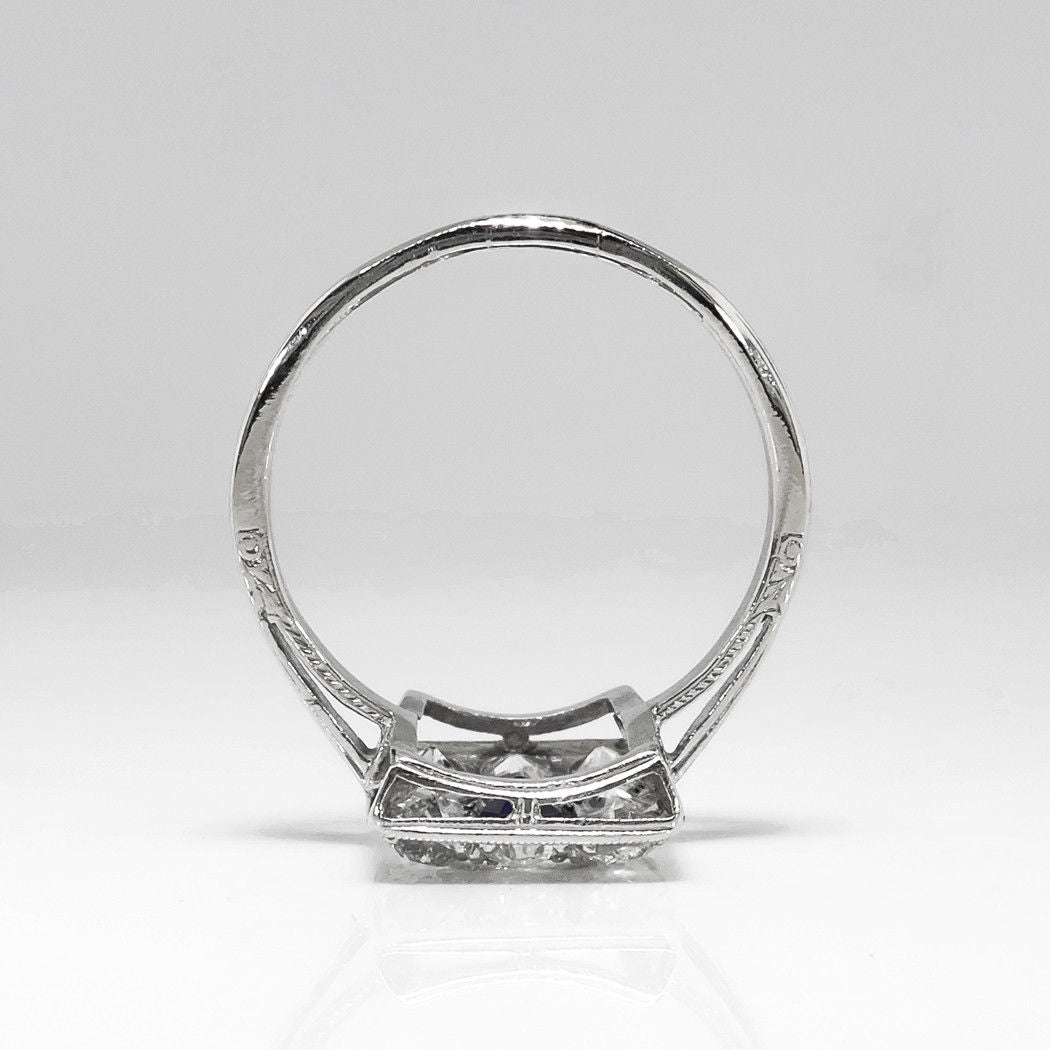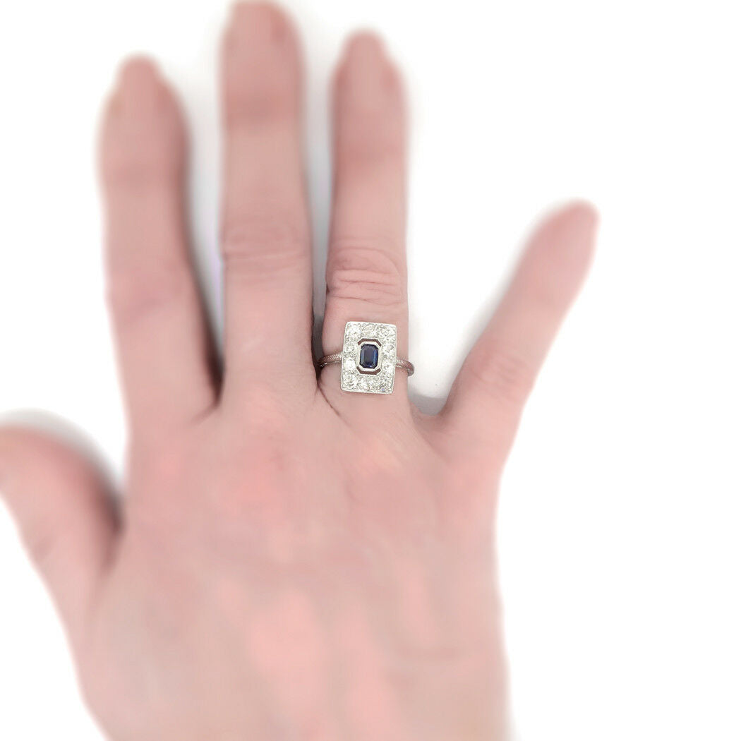 5ct Emerald Cut Blue Sapphire Art Deco Engagement Ring 14k White Gold Finish