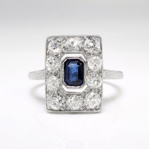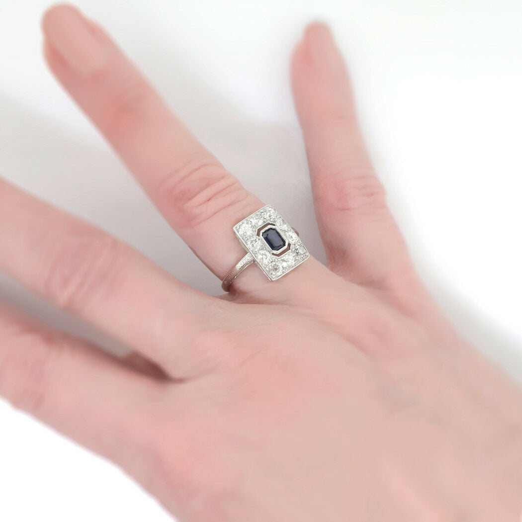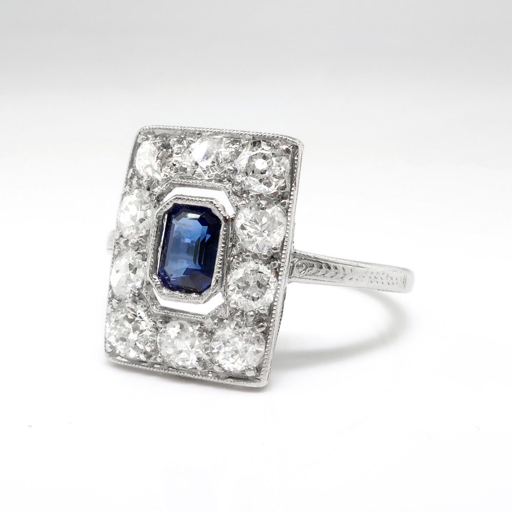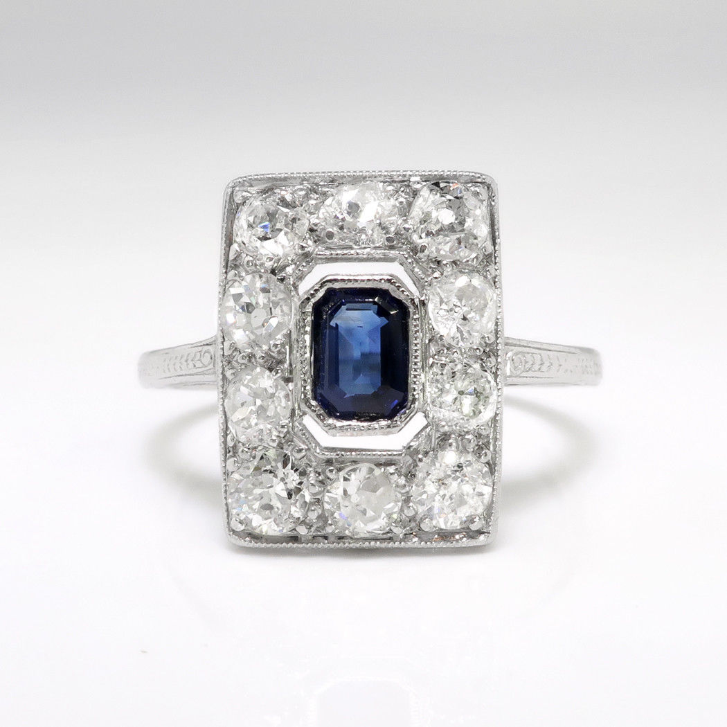 5ct Emerald Cut Blue Sapphire Art Deco Engagement Ring 14k White Gold Finish