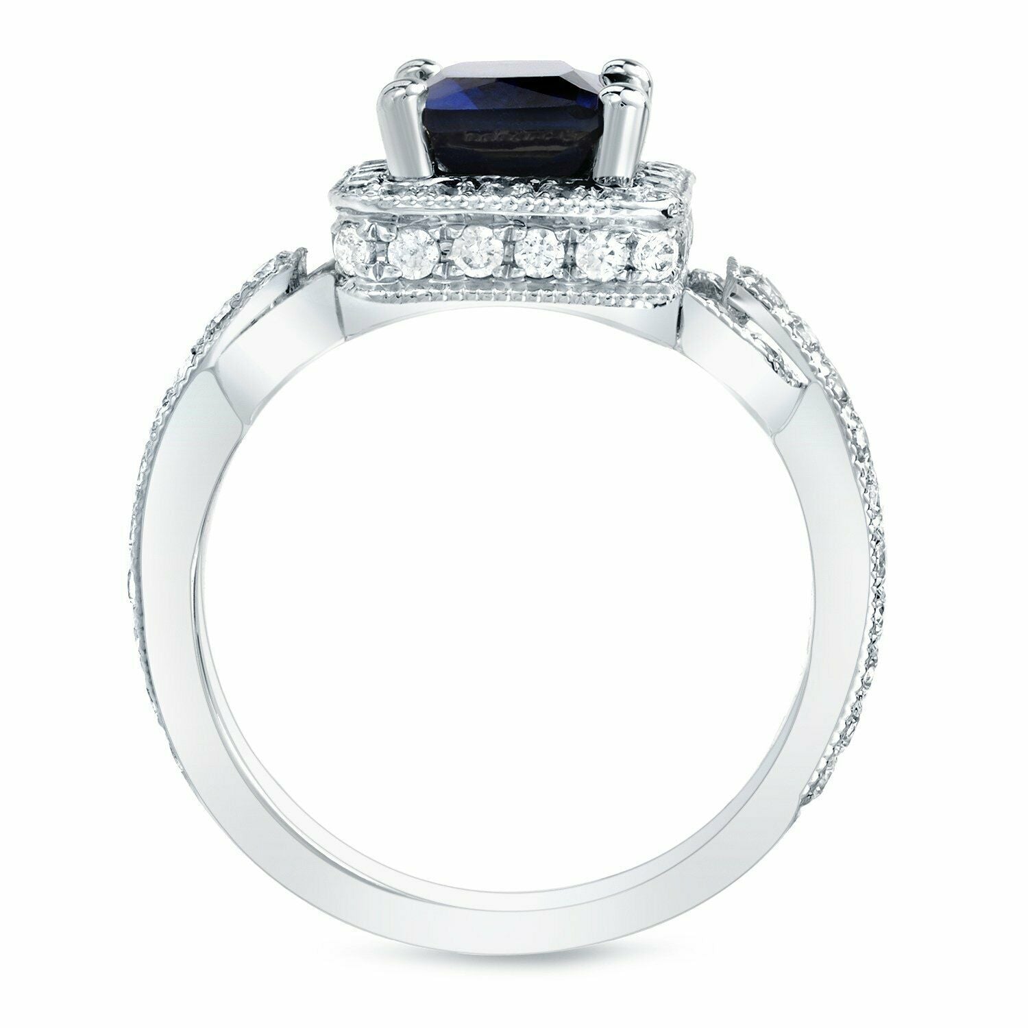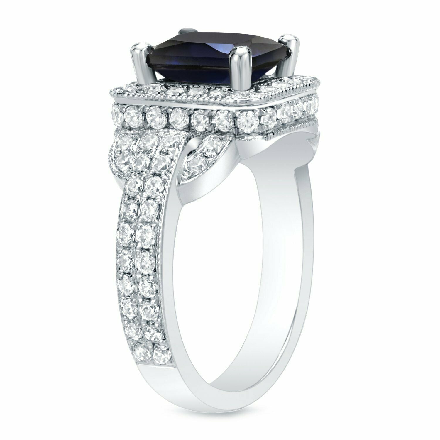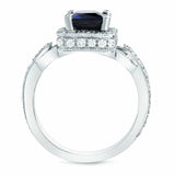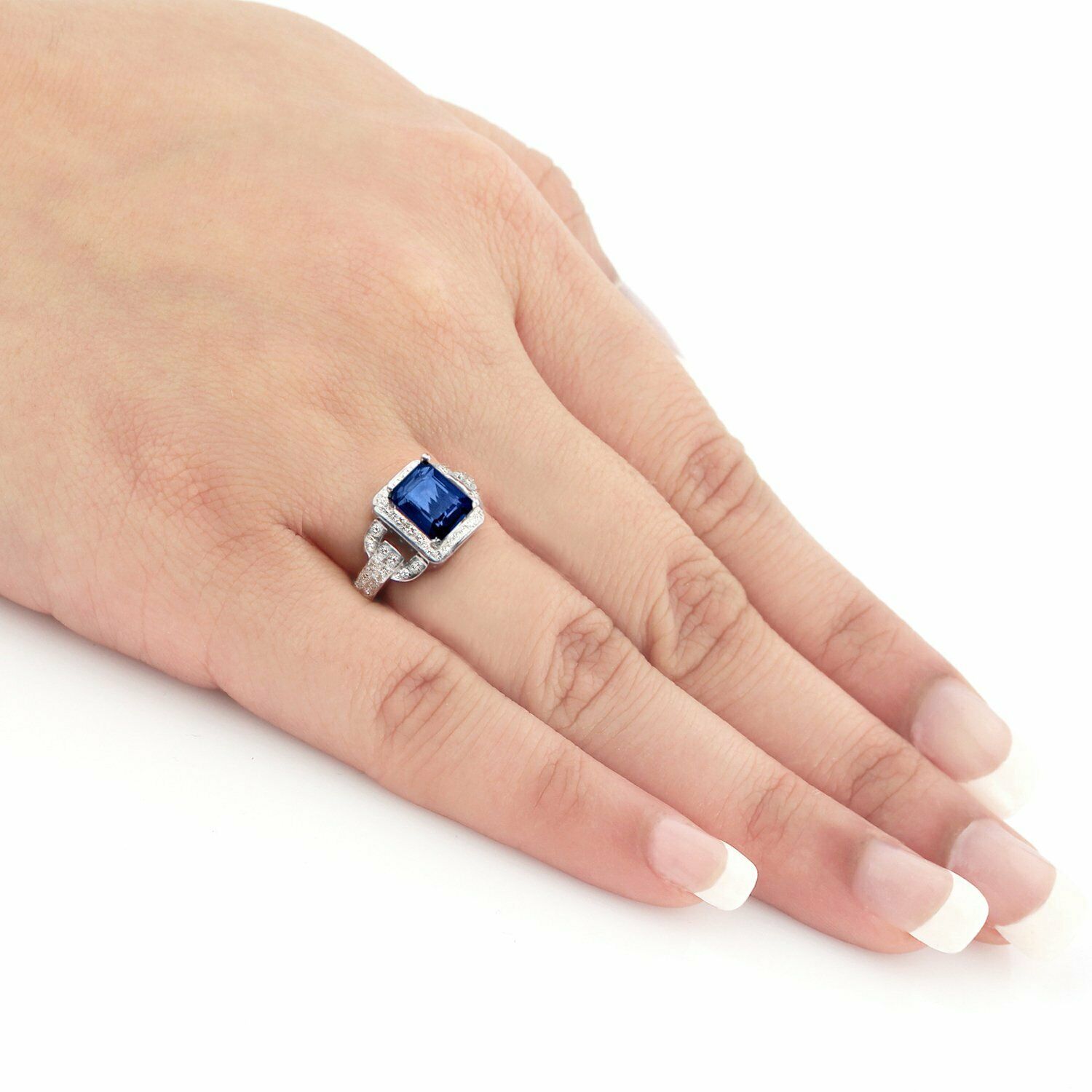 5Ct Emerald Cut Blue Sapphire Milgrain Halo Engagement Ring 14K White Gold Over