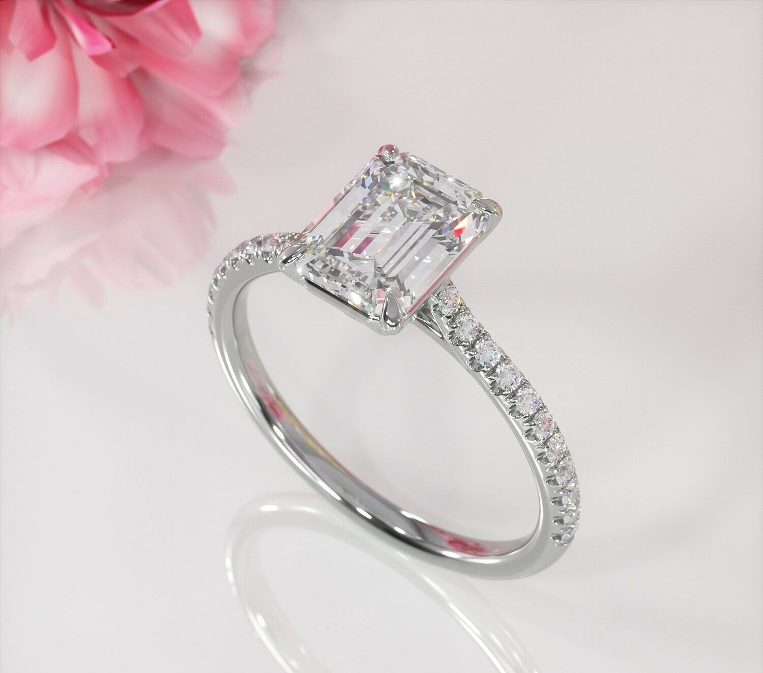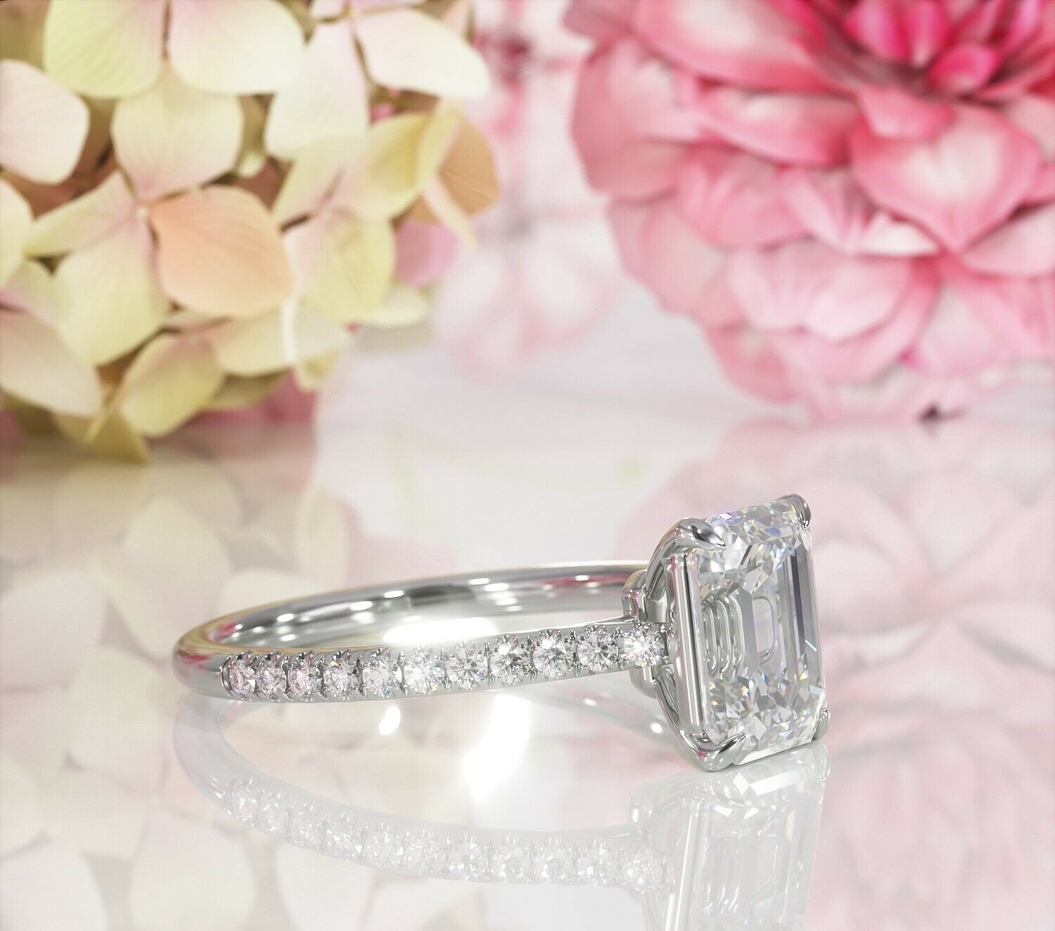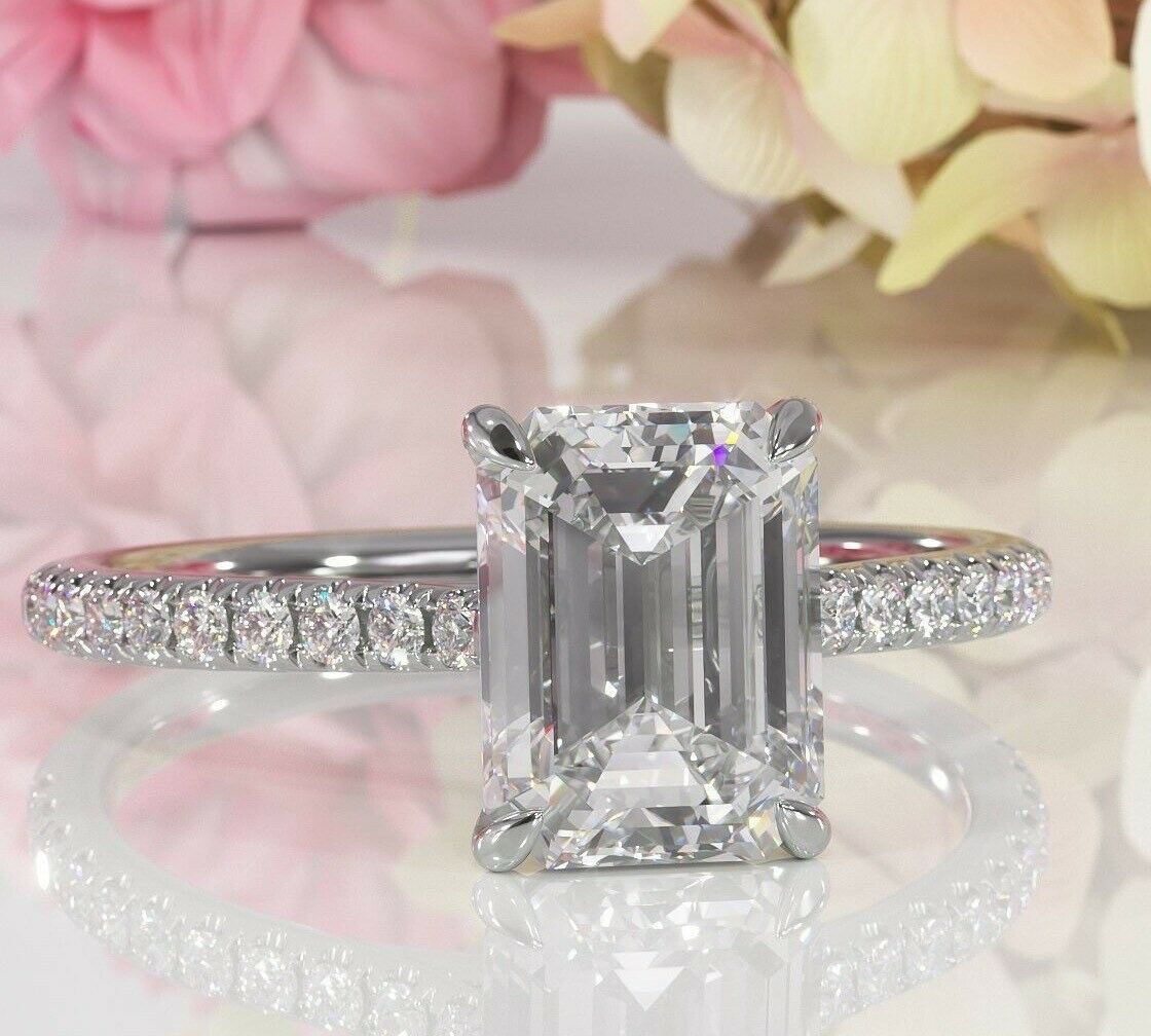 5Ct Emerald Cut Diamond Engagement Ring 18K White Gold Finish With Round Accents