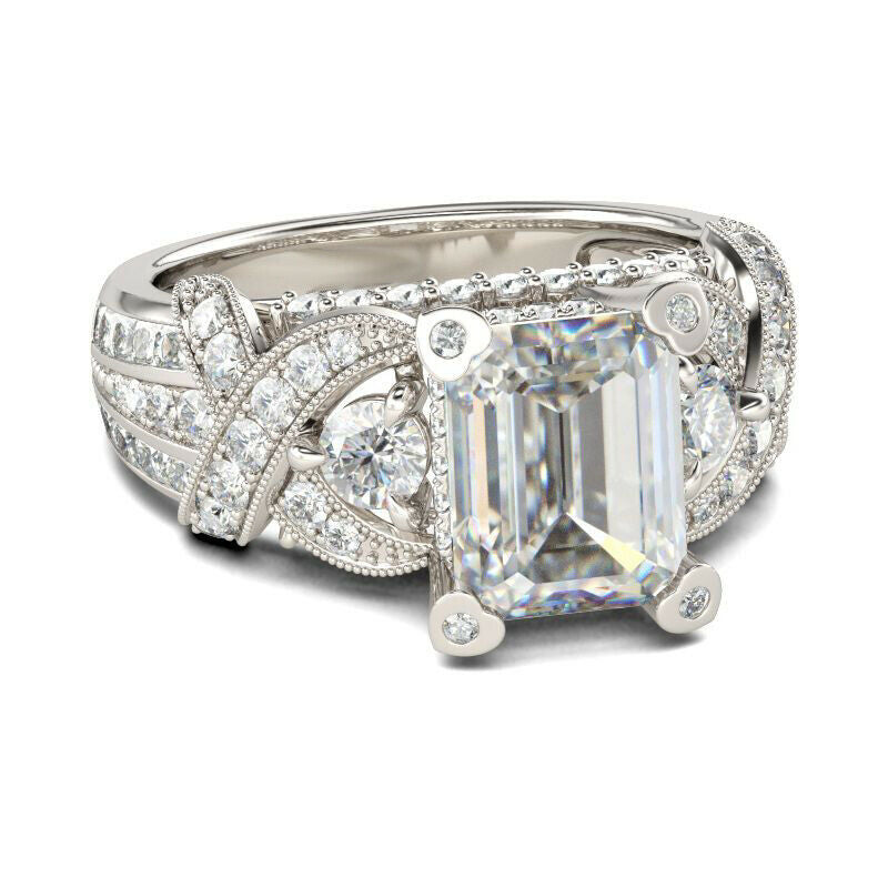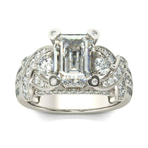 5Ct Emerald Cut Diamond Gatsby Cocktail Engagement Ring 14K White Gold Finish