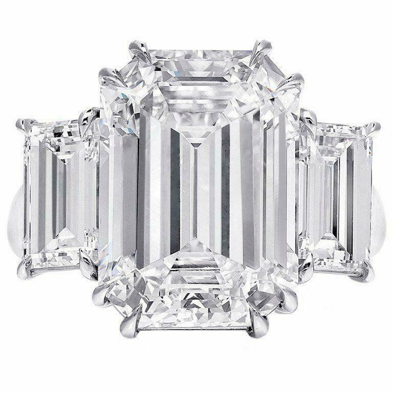 5ct Emerald Cut Diamond Gatsby Trilogy Engagement Ring 18K White Gold Finish