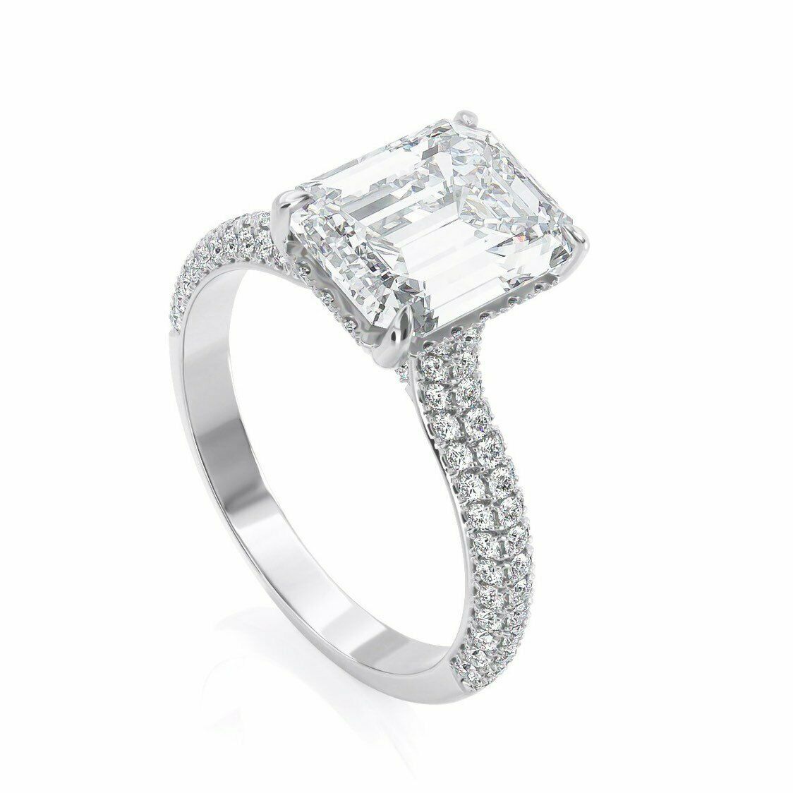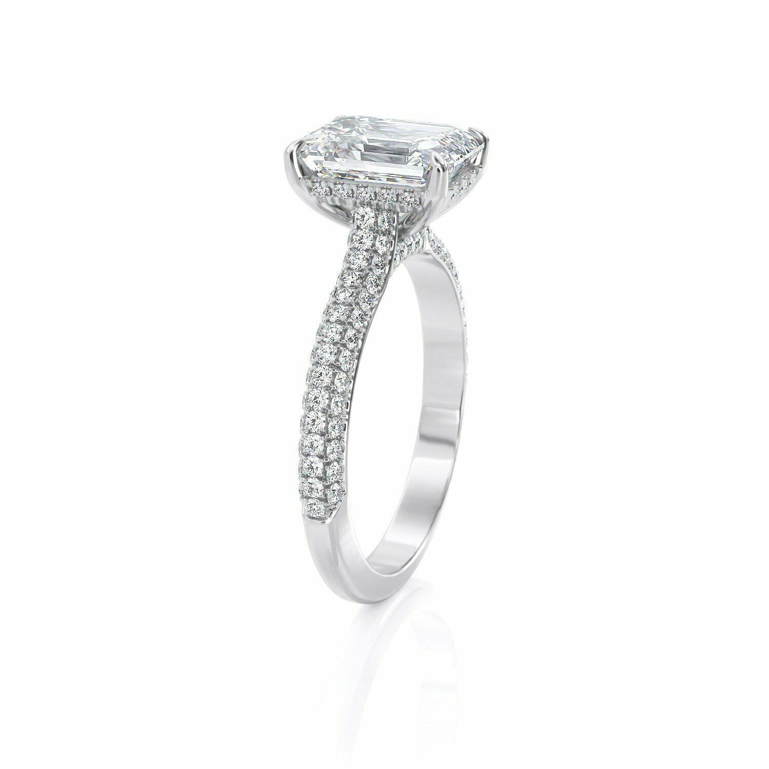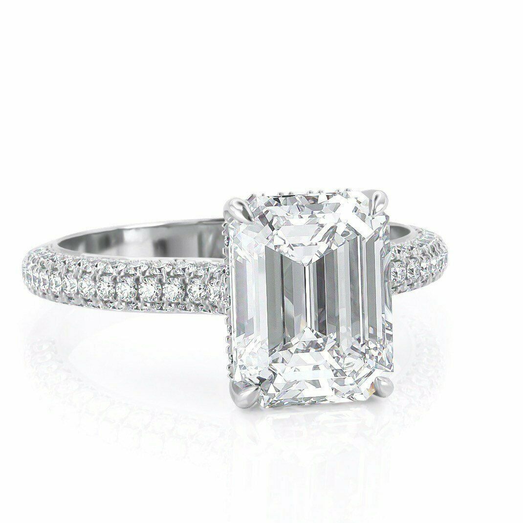 5Ct Emerald Cut Diamond Solitaire Ring 14K White Gold Finish Iced Cluster Accent