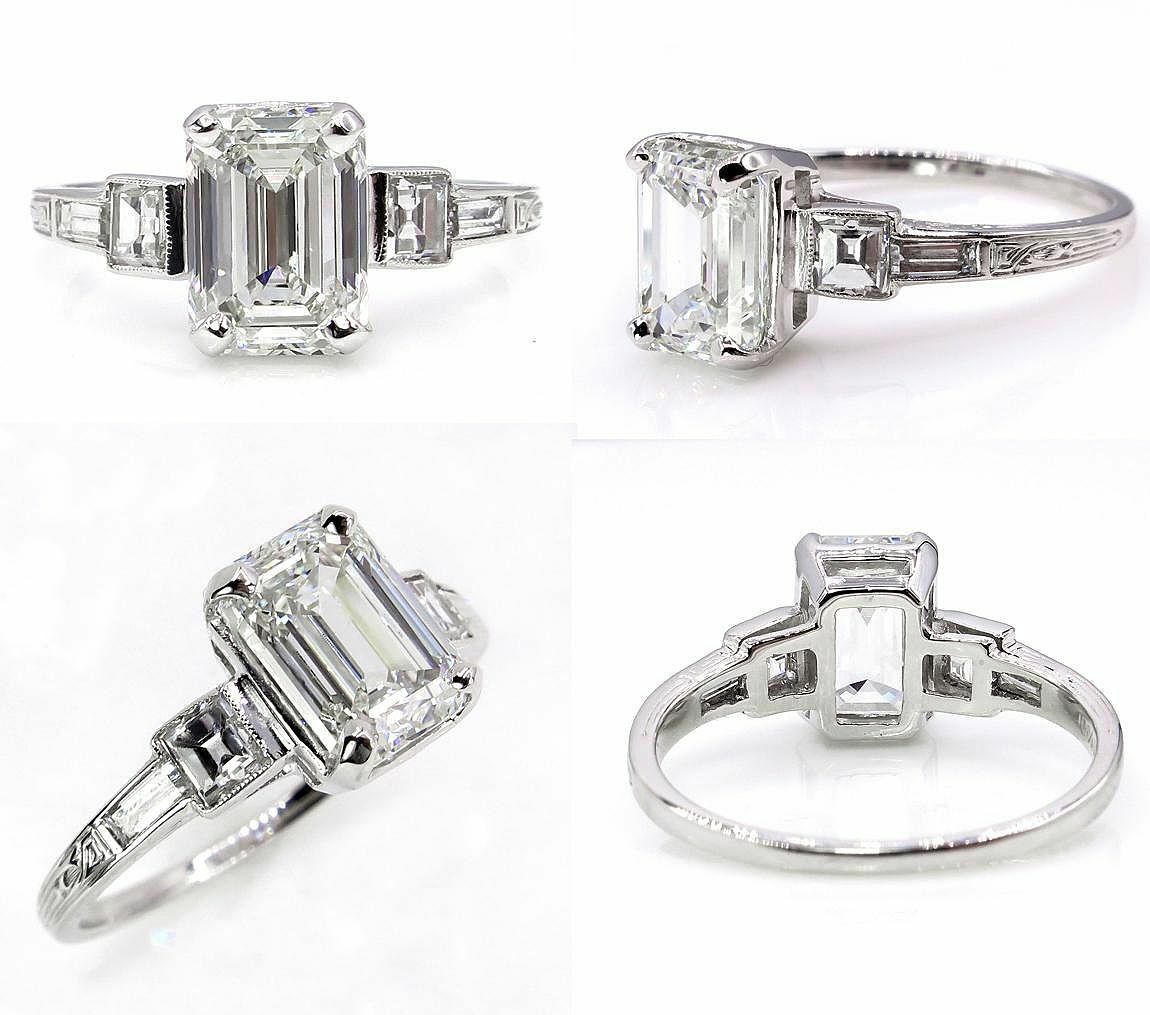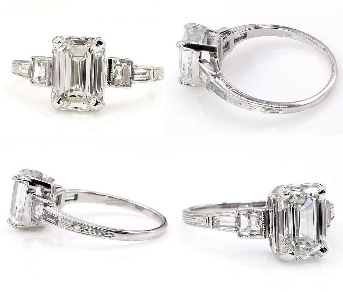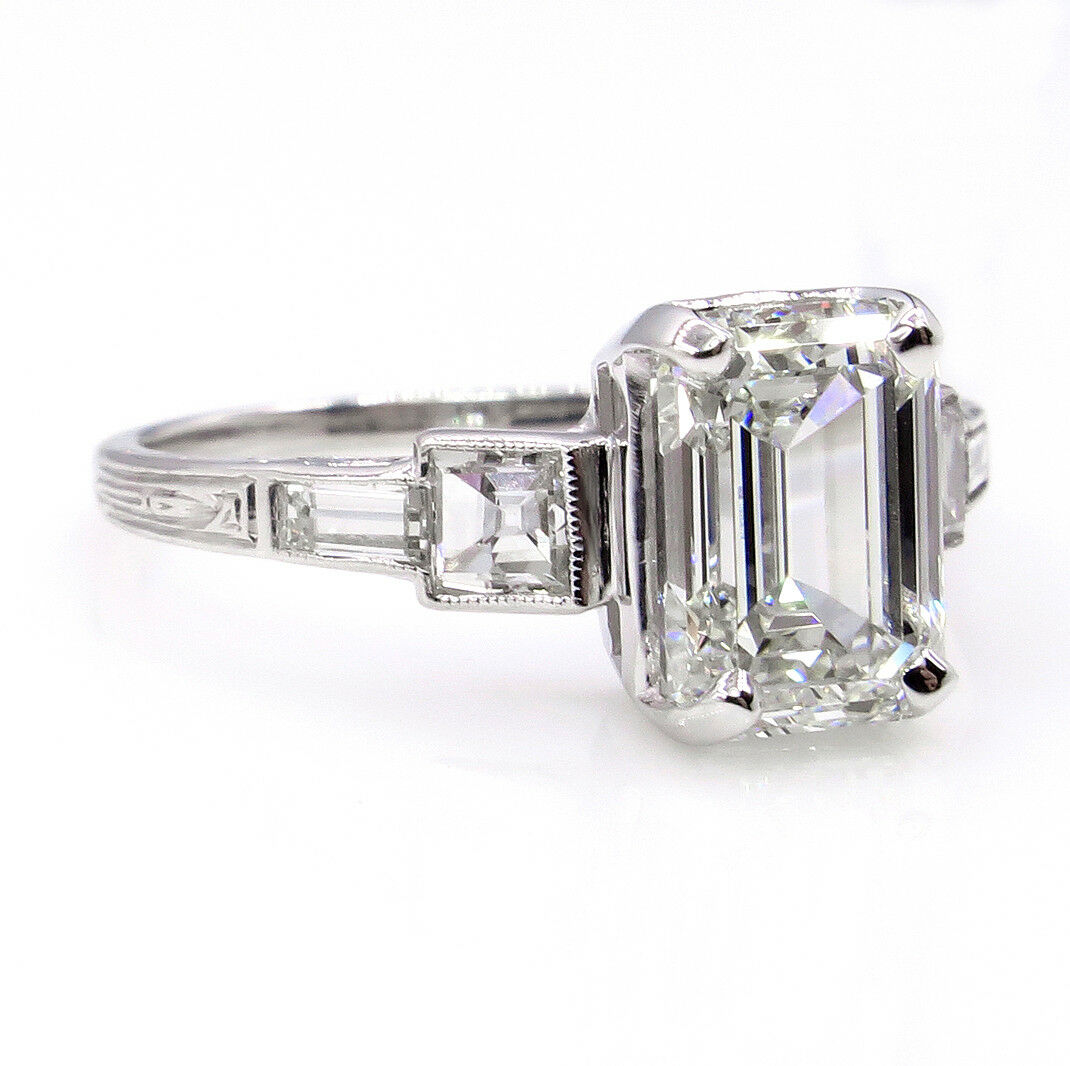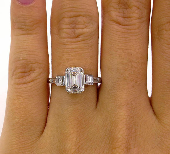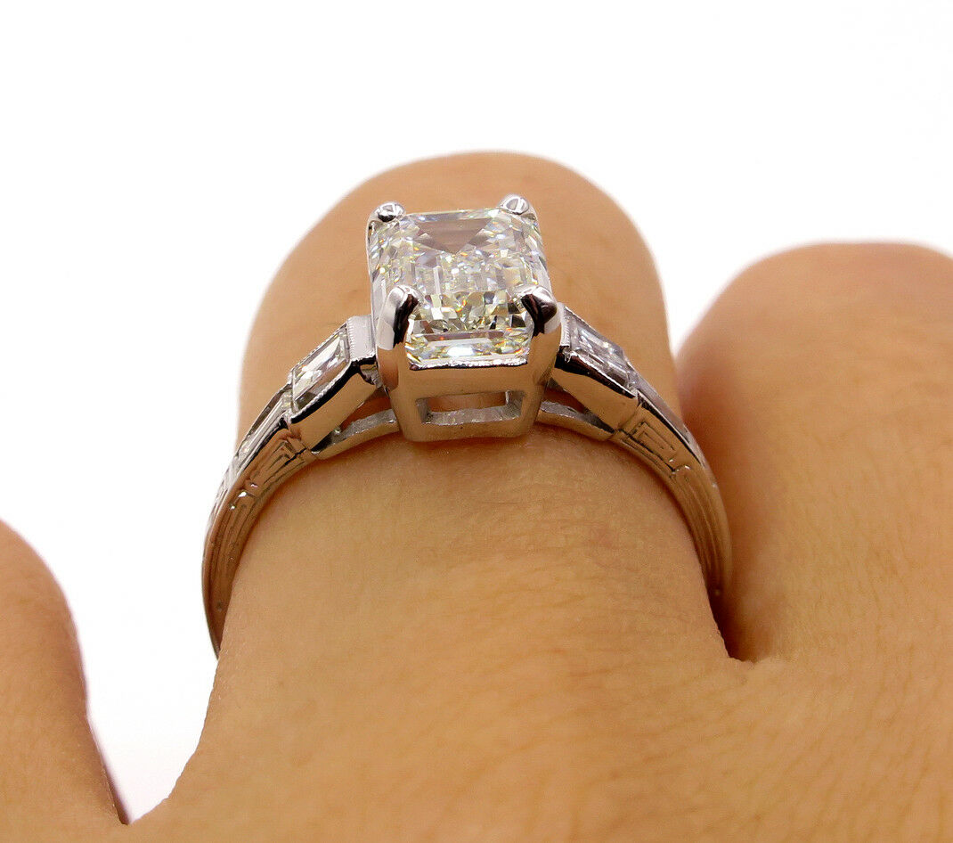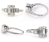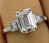 5Ct Emerald Cut Diamond Solitaire Ring 14K White Gold Finish with Asscher Accent