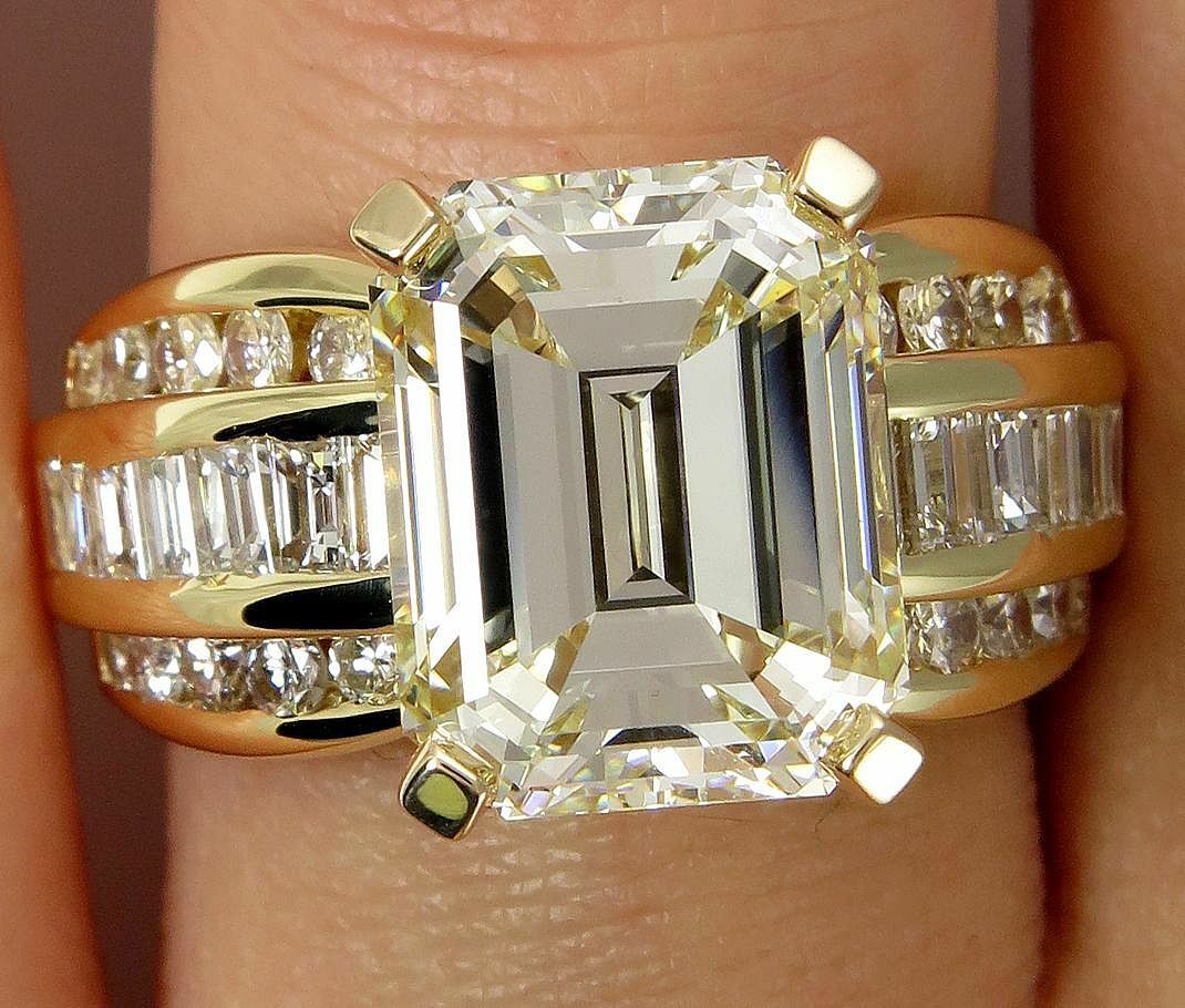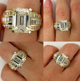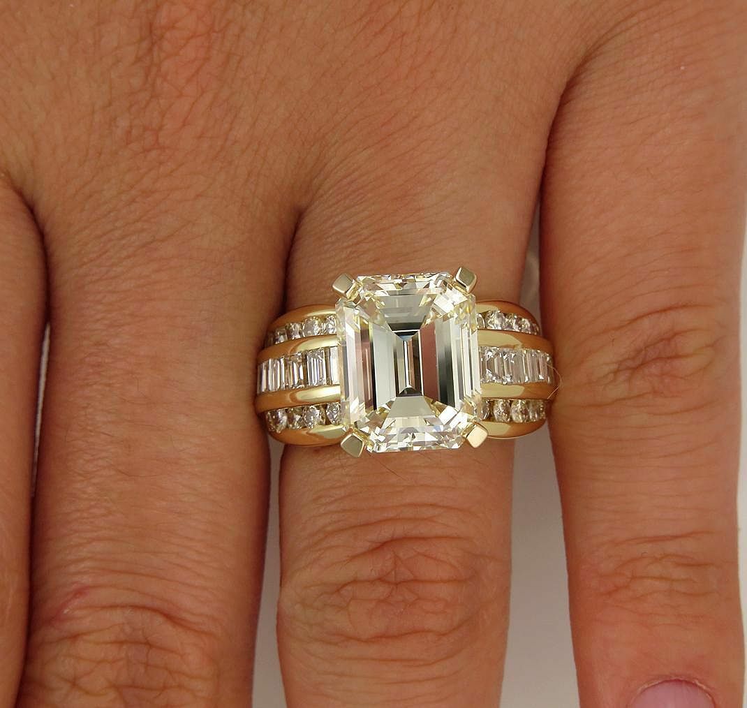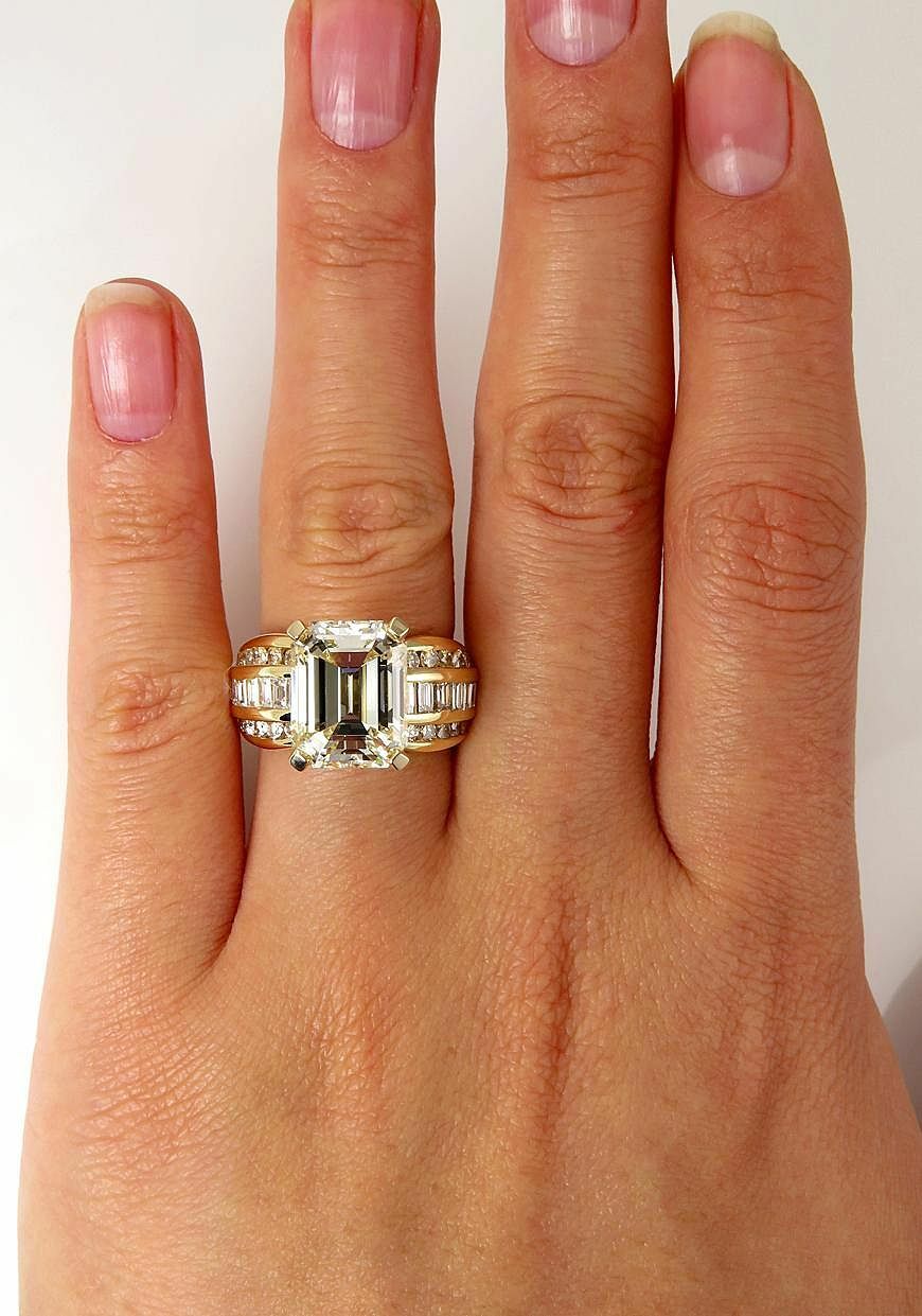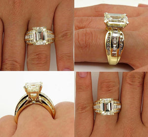 5Ct Emerald Cut Diamond Wide Art Deco Engagement Ring 14K Yellow Gold Finish