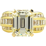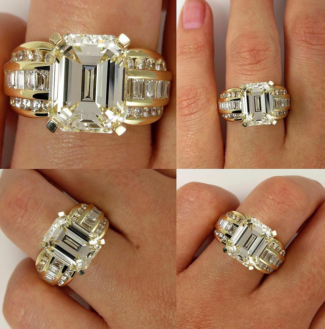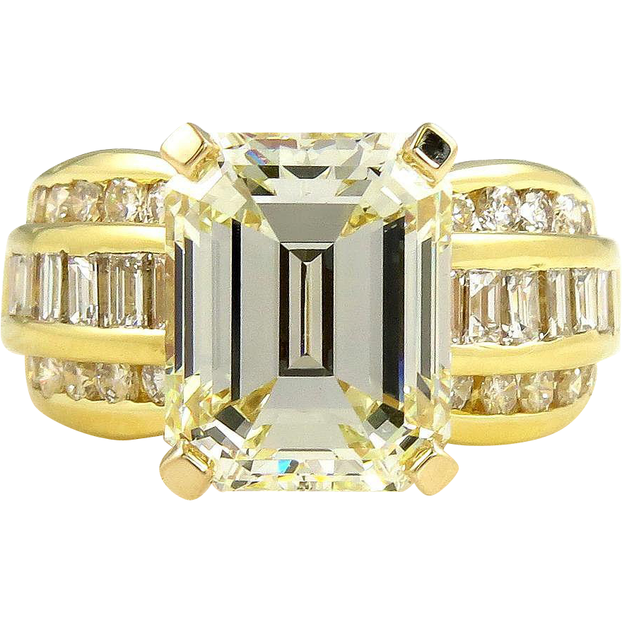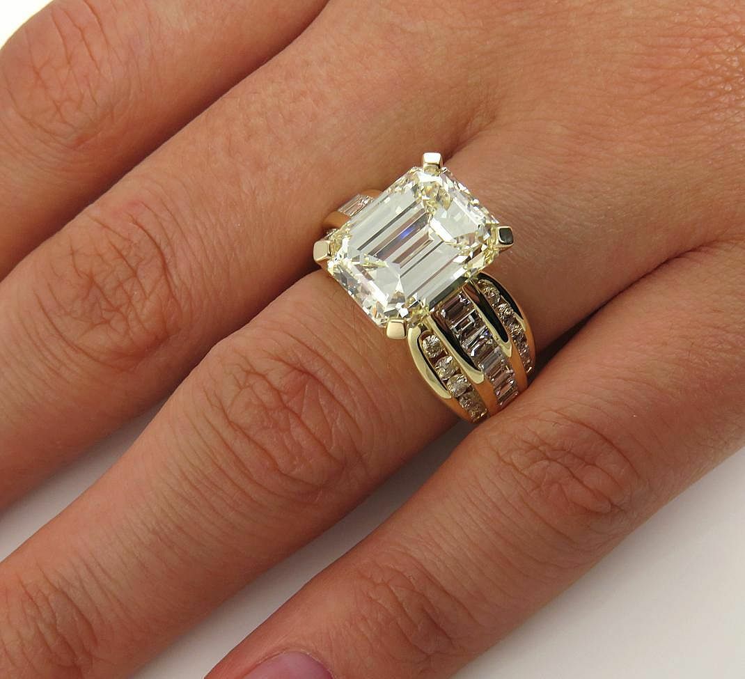5Ct Emerald Cut Diamond Wide Art Deco Engagement Ring 14K Yellow Gold Finish