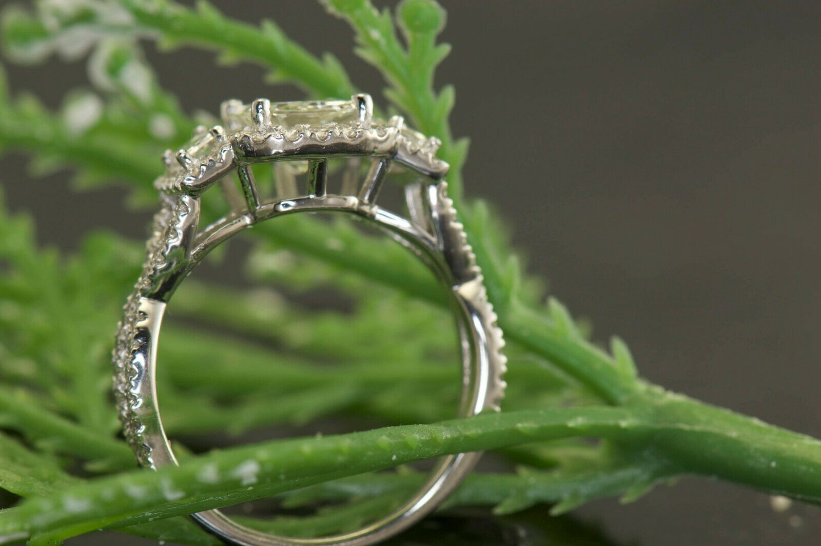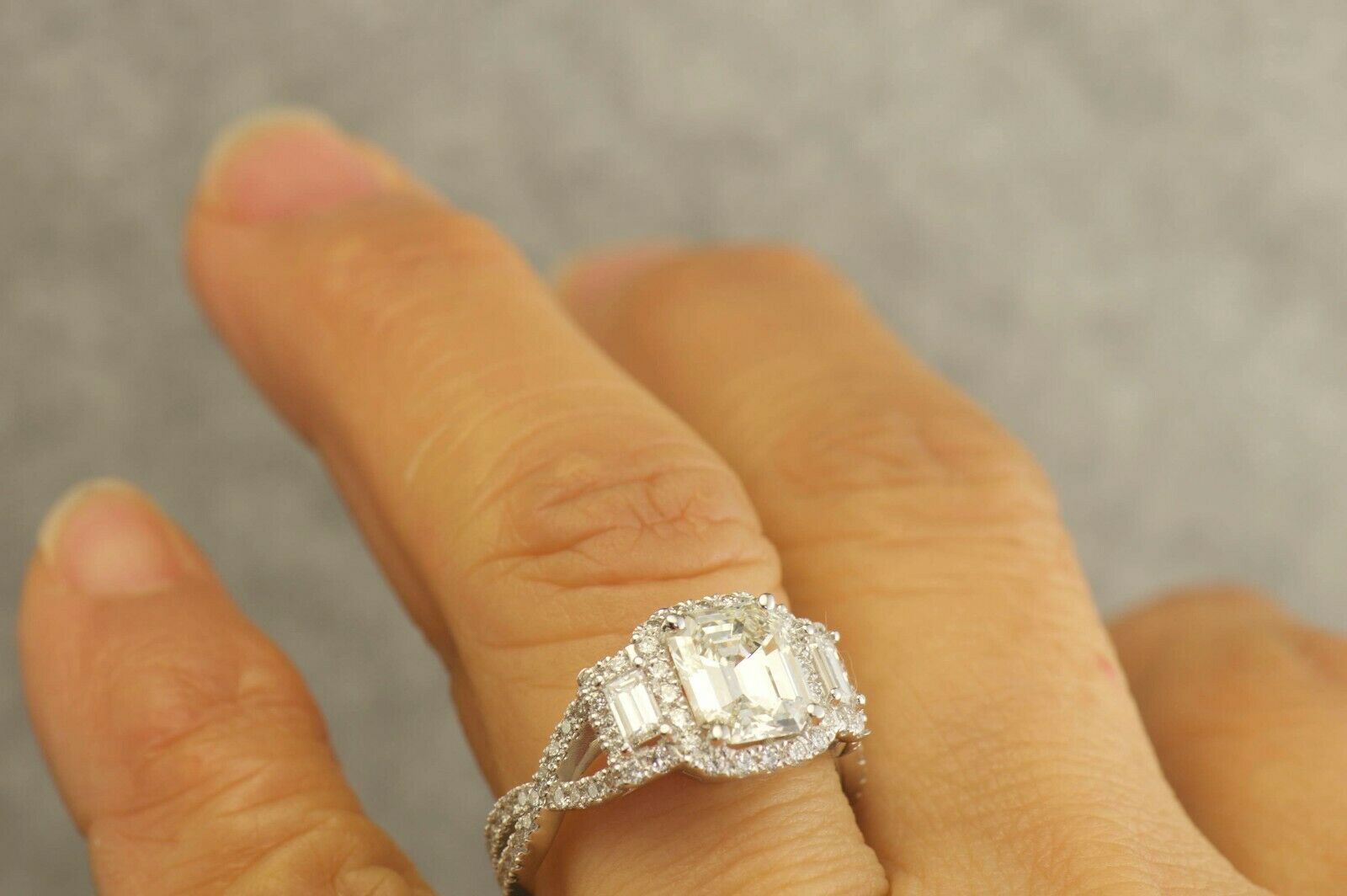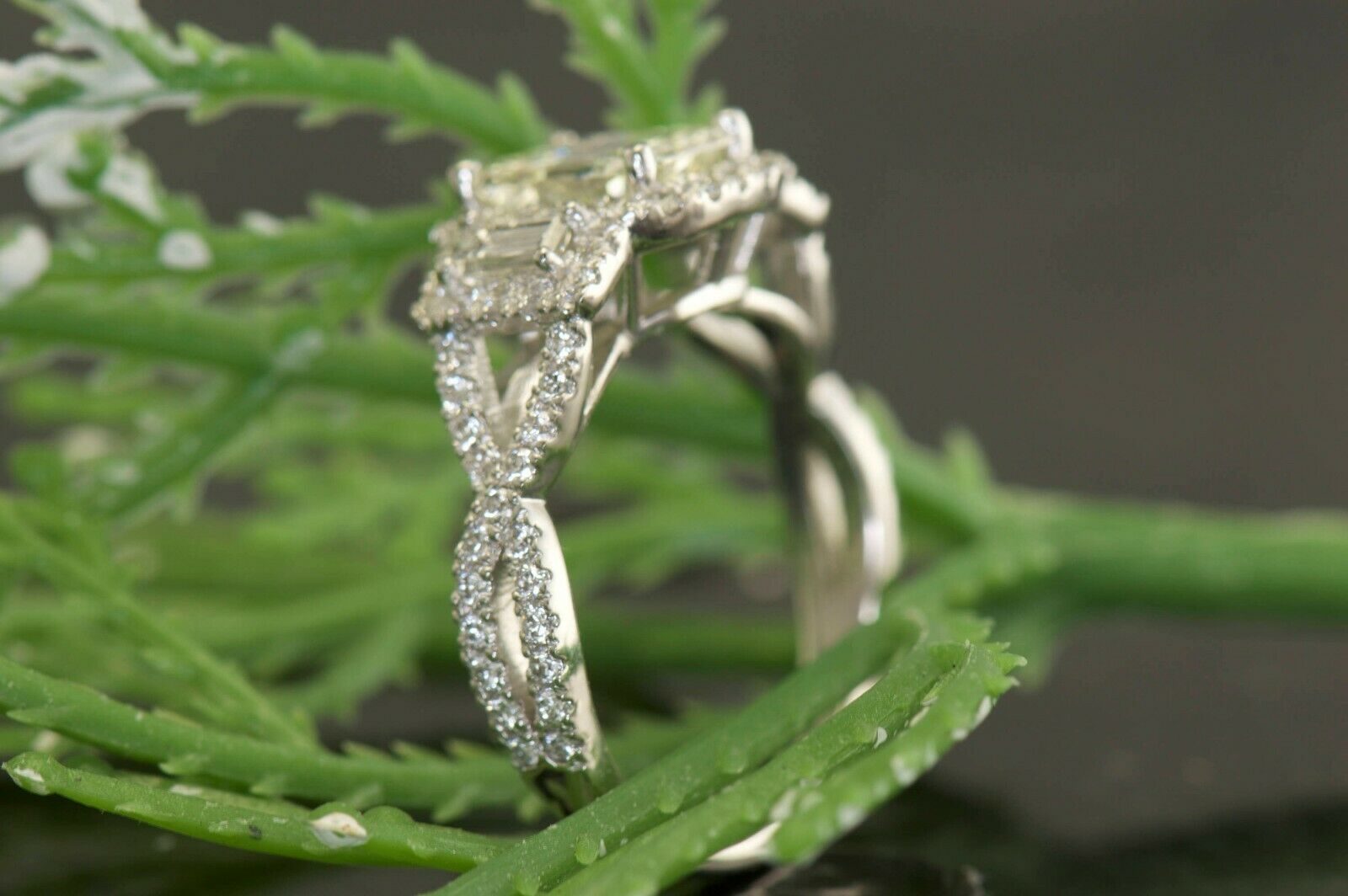 5Ct Emerald Cut DVVS1 Diamond Gatsby Halo Engagement Ring 14K White Gold Finish