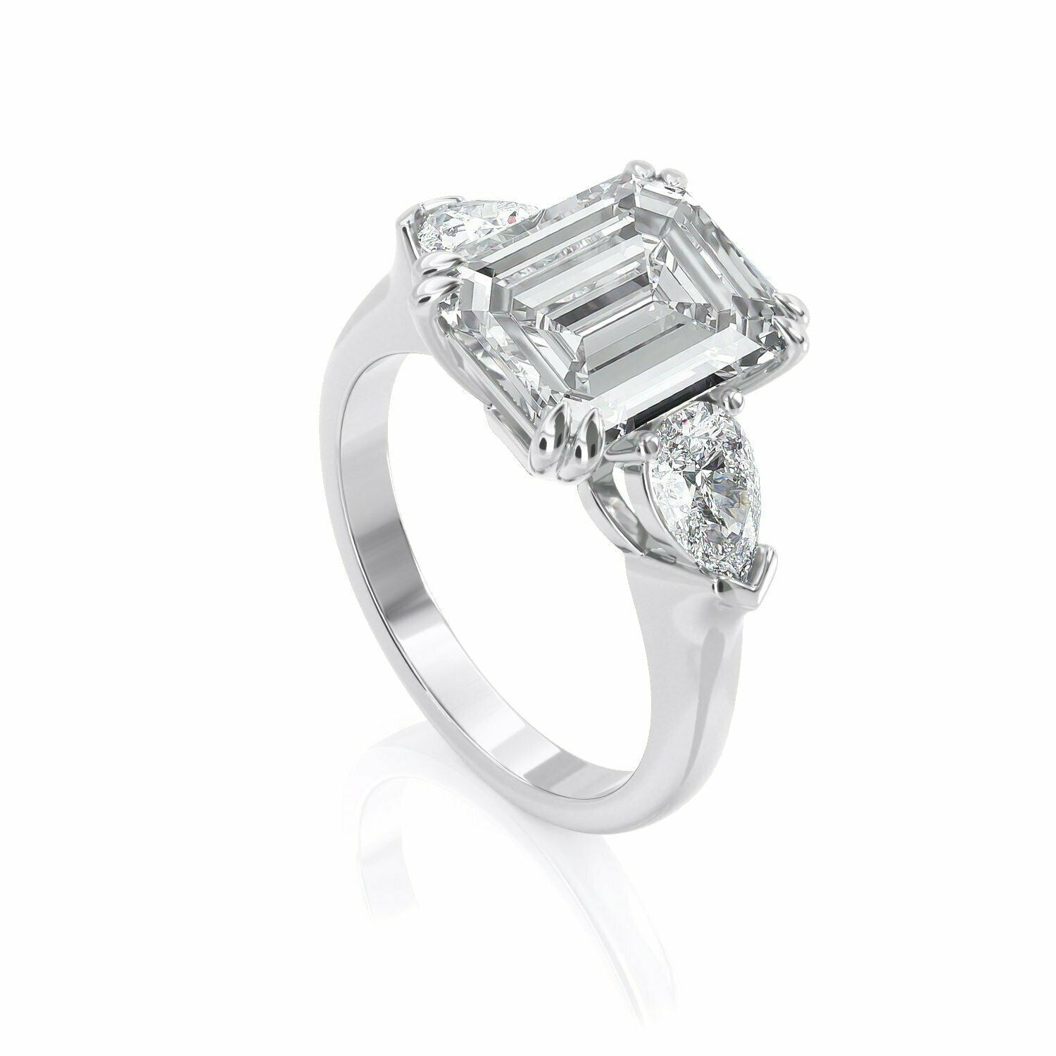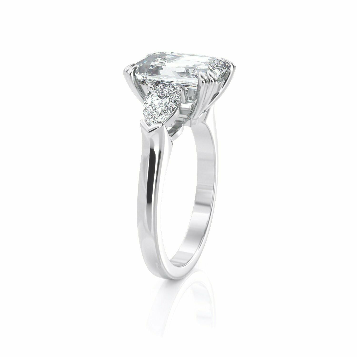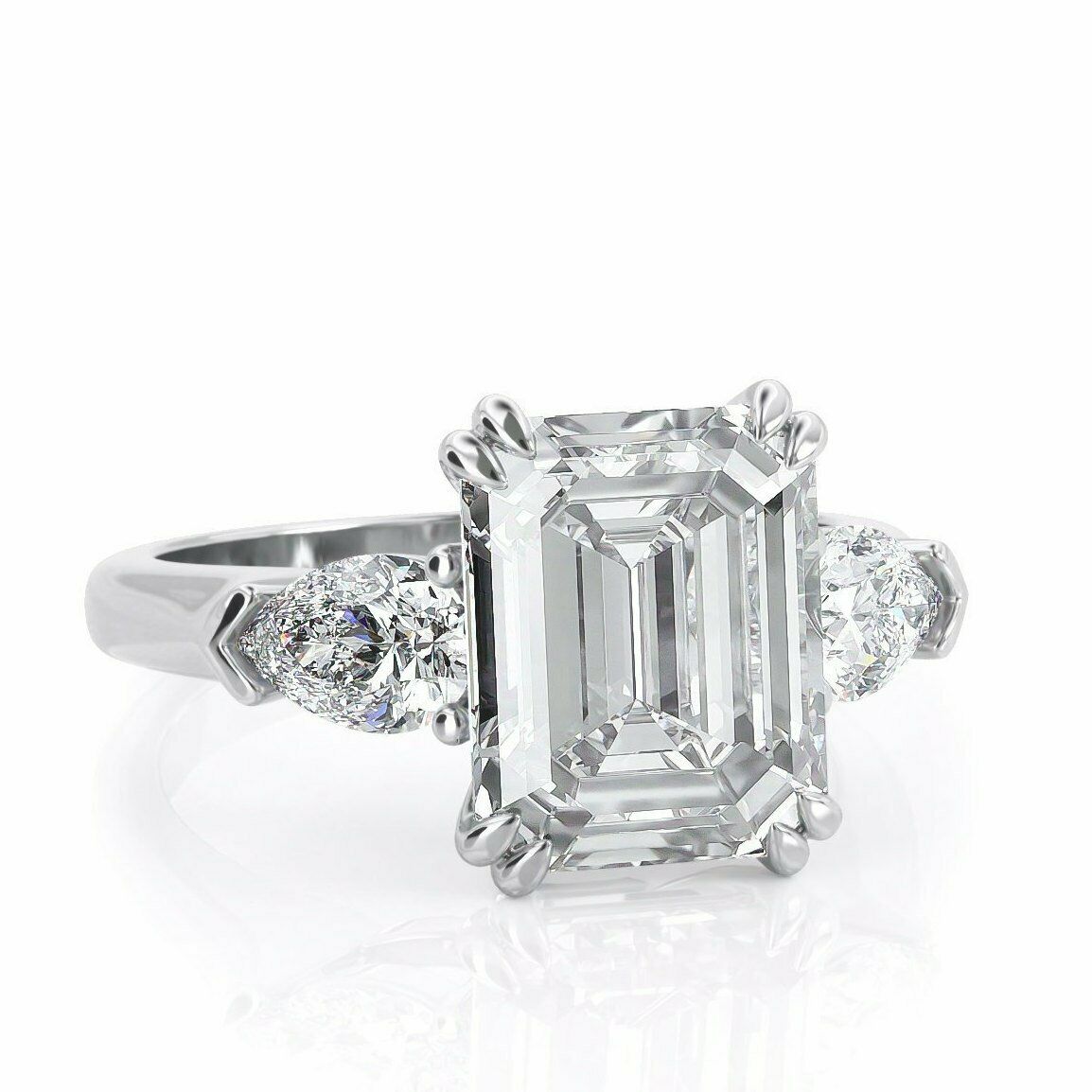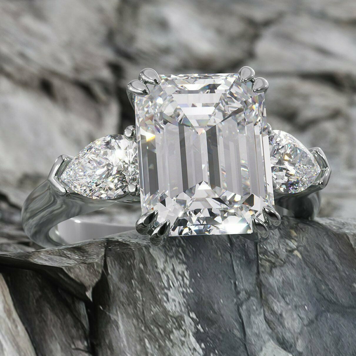 5Ct Emerald Cut DVVS1 Diamond Pear Accents Engagement Ring 14K White Gold Finish
