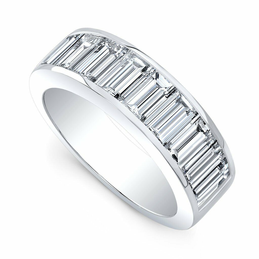 5Ct Emerald Cut Elegant Diamond Half Eternity Wedding Band 18K White Gold Finish