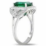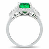 5Ct Green Emerald Vintage Milgrain Diamond Engagement Ring 14K White Gold Finish