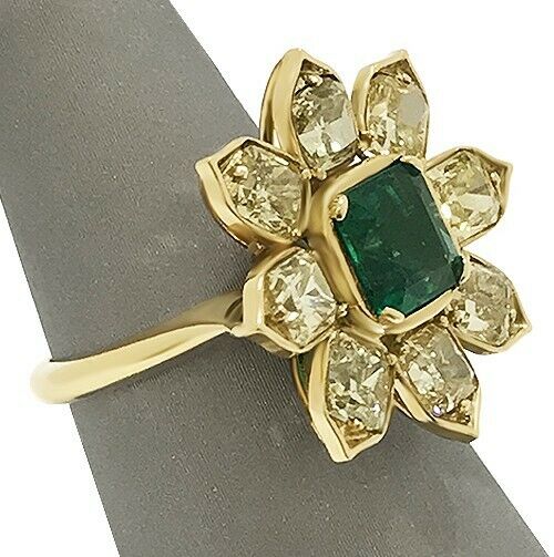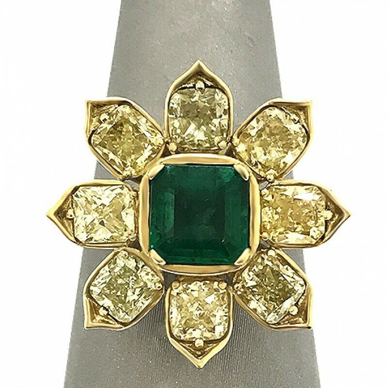 5Ct Green Emerald Yellow Sapphire Sunshine Cocktail Ring 14K Yellow Gold Finish