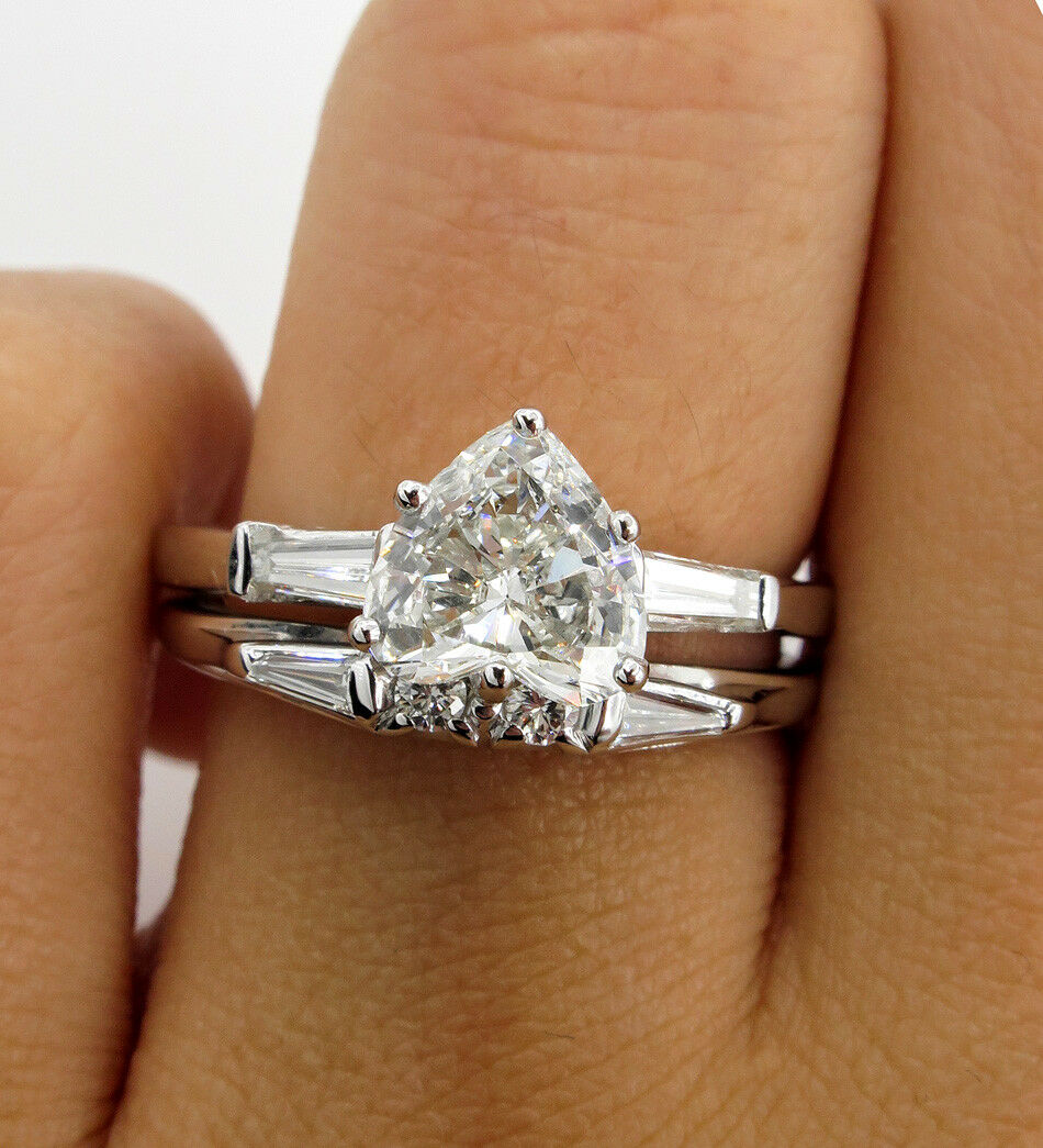 5Ct Heart Cut Diamond Bridal Set Engagement Ring Band 18K White Gold Finish