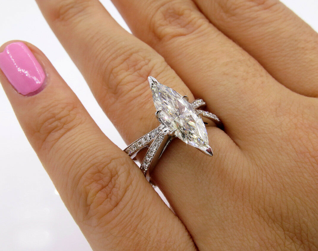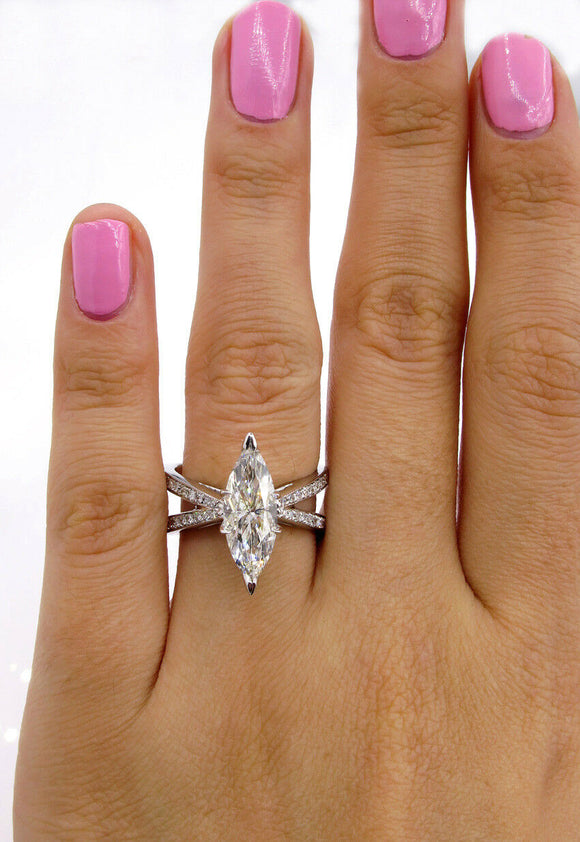 5Ct Marquise Cut Diamond Reverse Split Shank Engagement Ring 14K White Gold Over