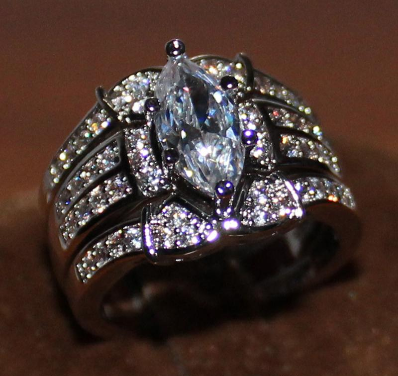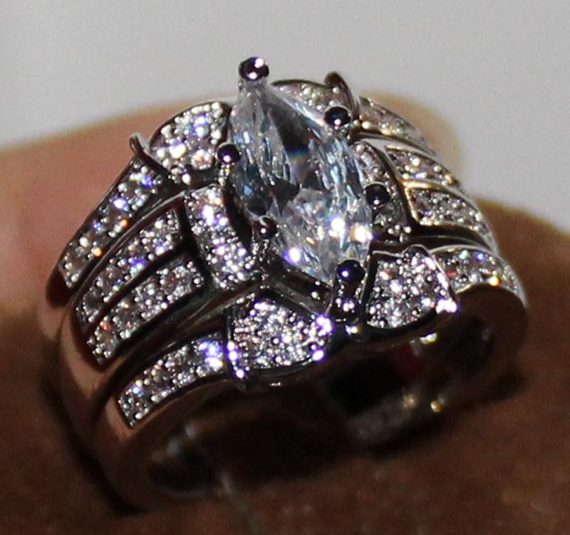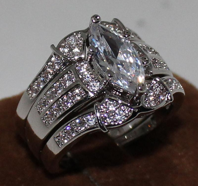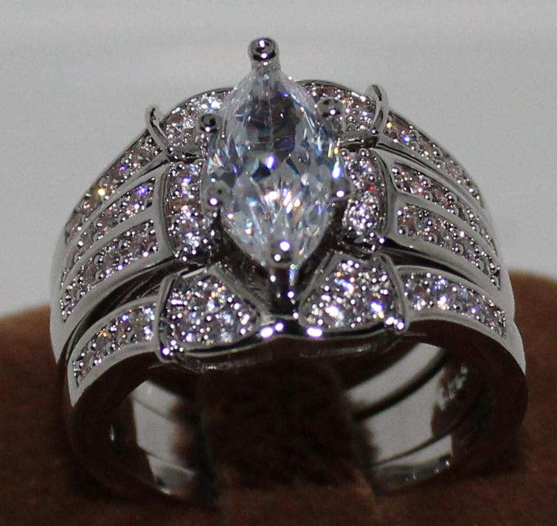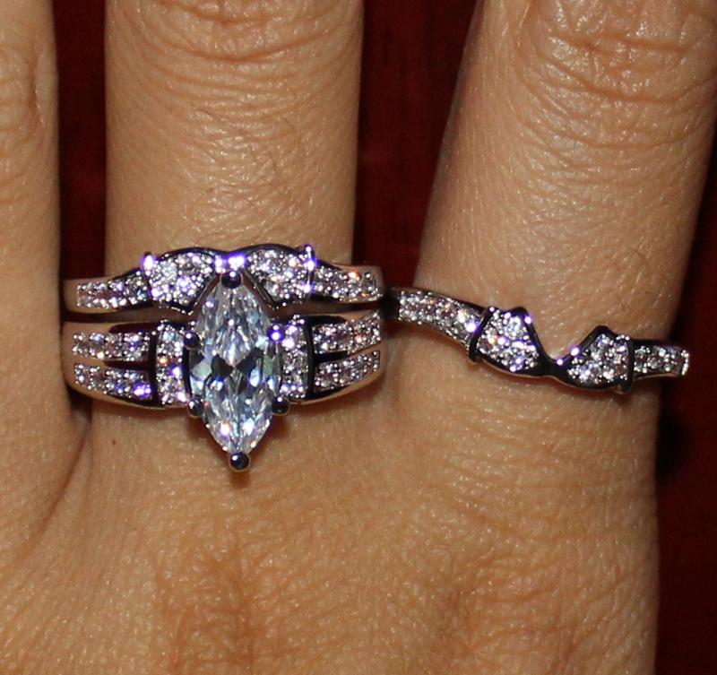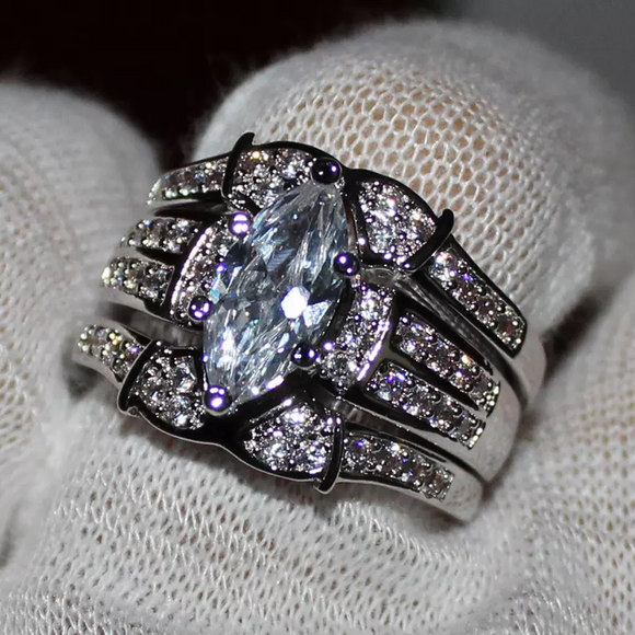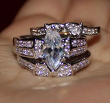 5Ct Marquise Cut Diamond Trio Wedding Set Engagement Ring 14K White Gold Finish