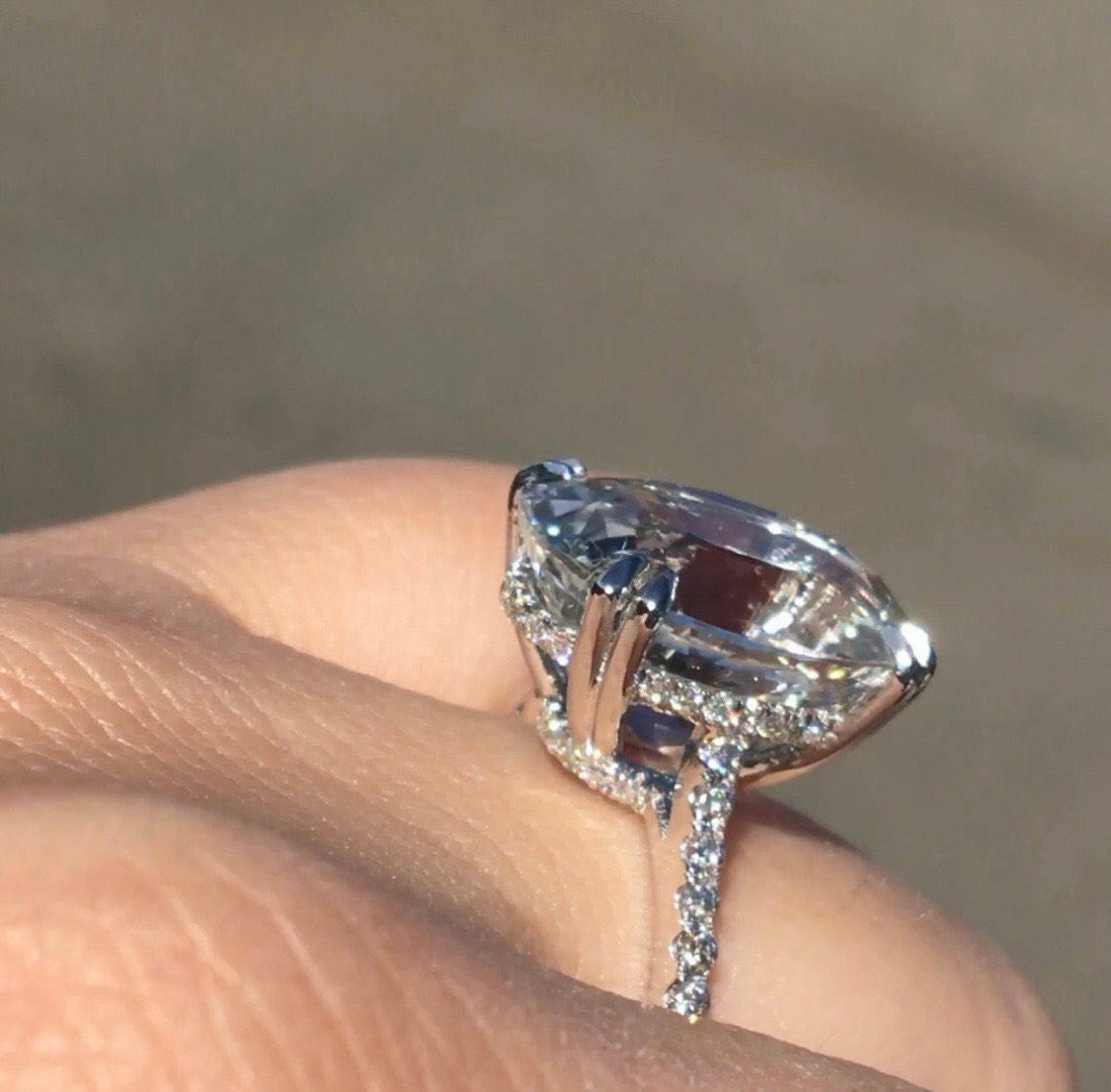 5Ct Oval Cut Diamond Hidden Halo Cocktail Solitaire Ring 14K White Gold Finish