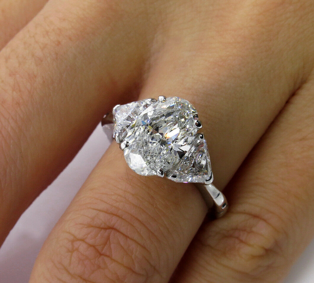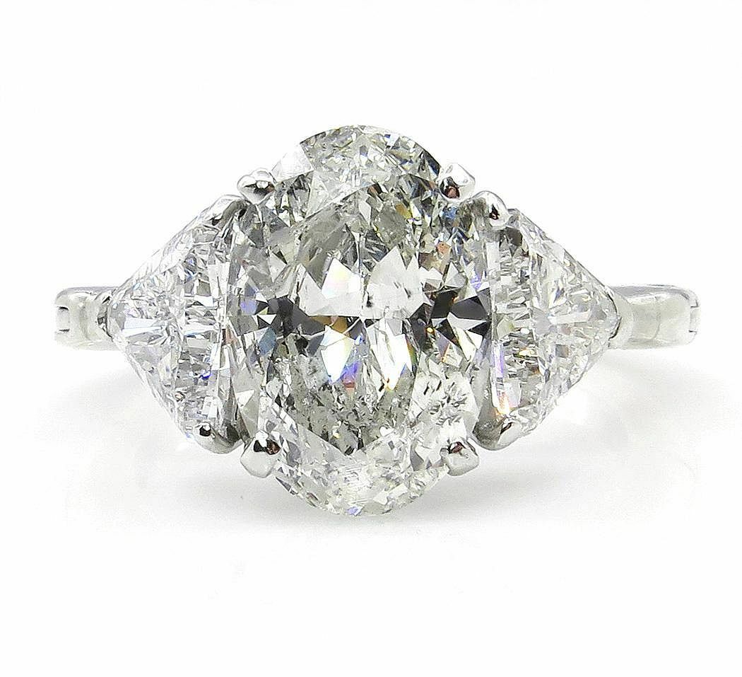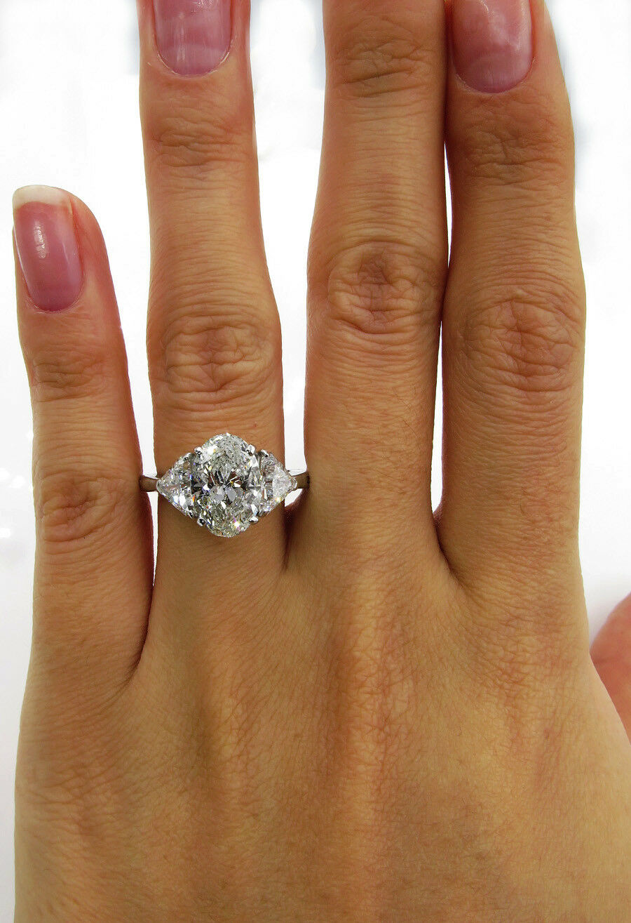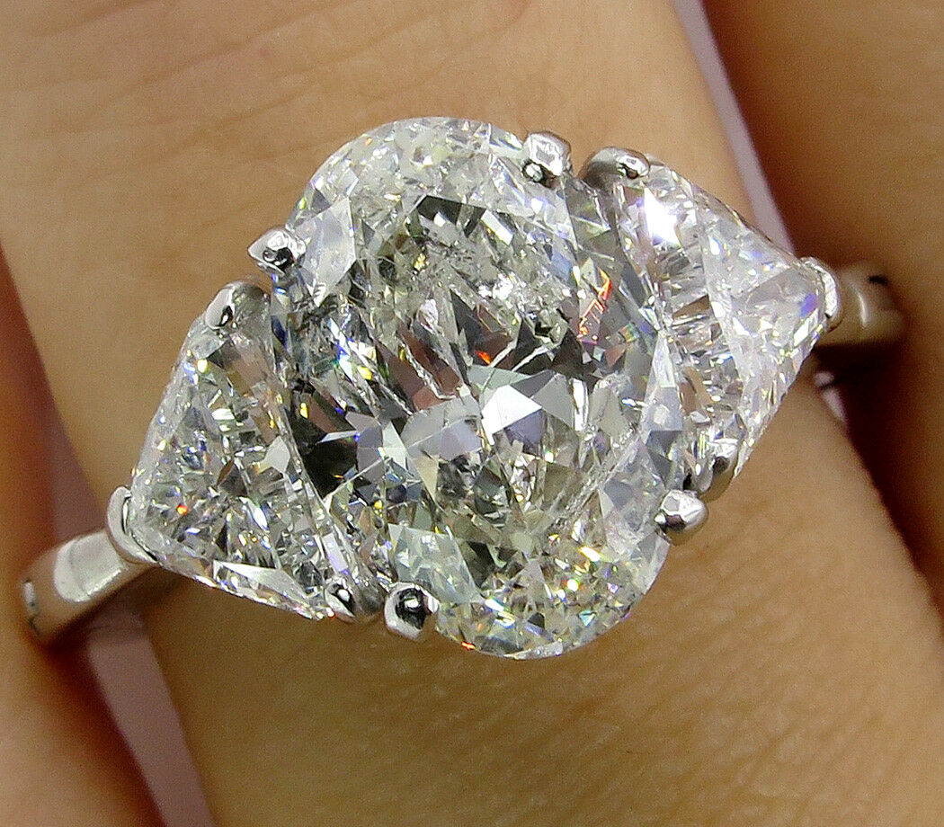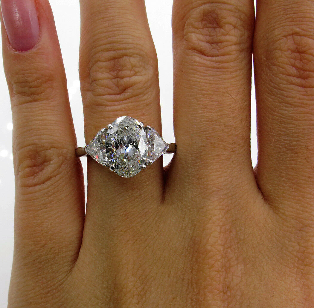 5Ct Oval Cut Diamond Solitaire Trilogy Ring 14K White Gold Over Trillion Accents