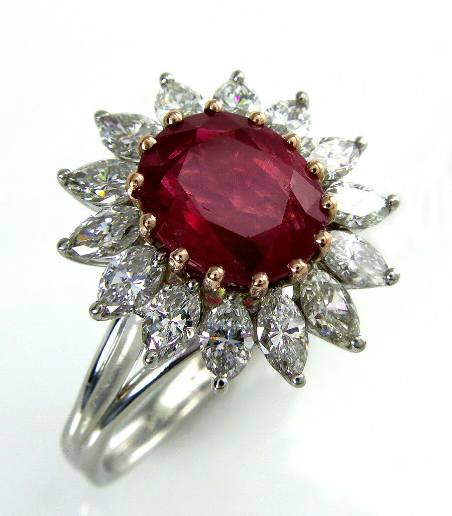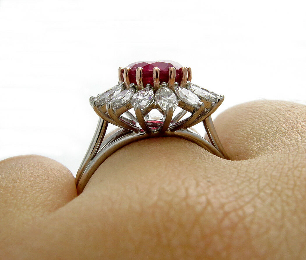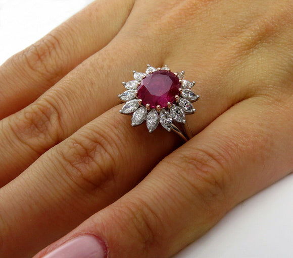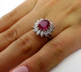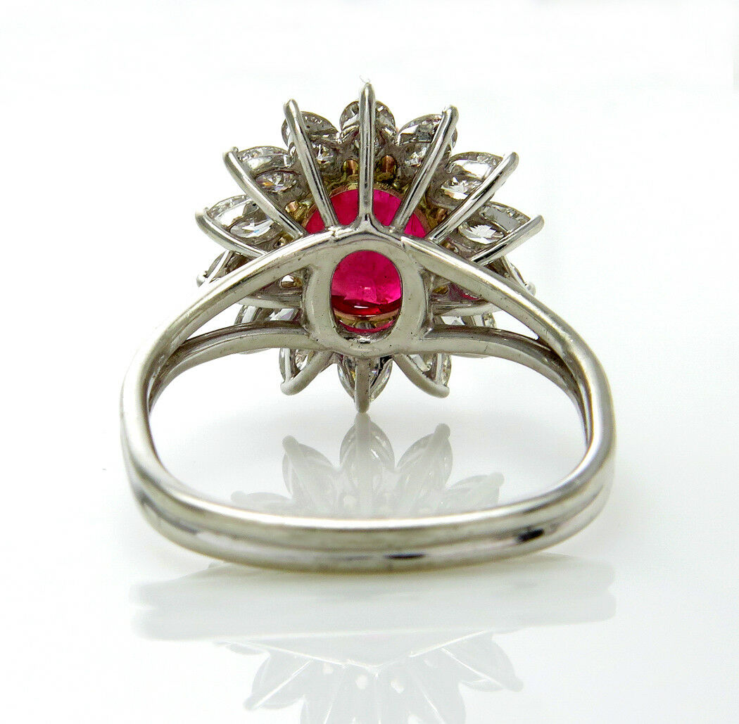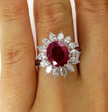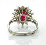 5Ct Oval Cut Pink Ruby Marquise Diamond Cocktail Floral Ring 14K White Gold Over