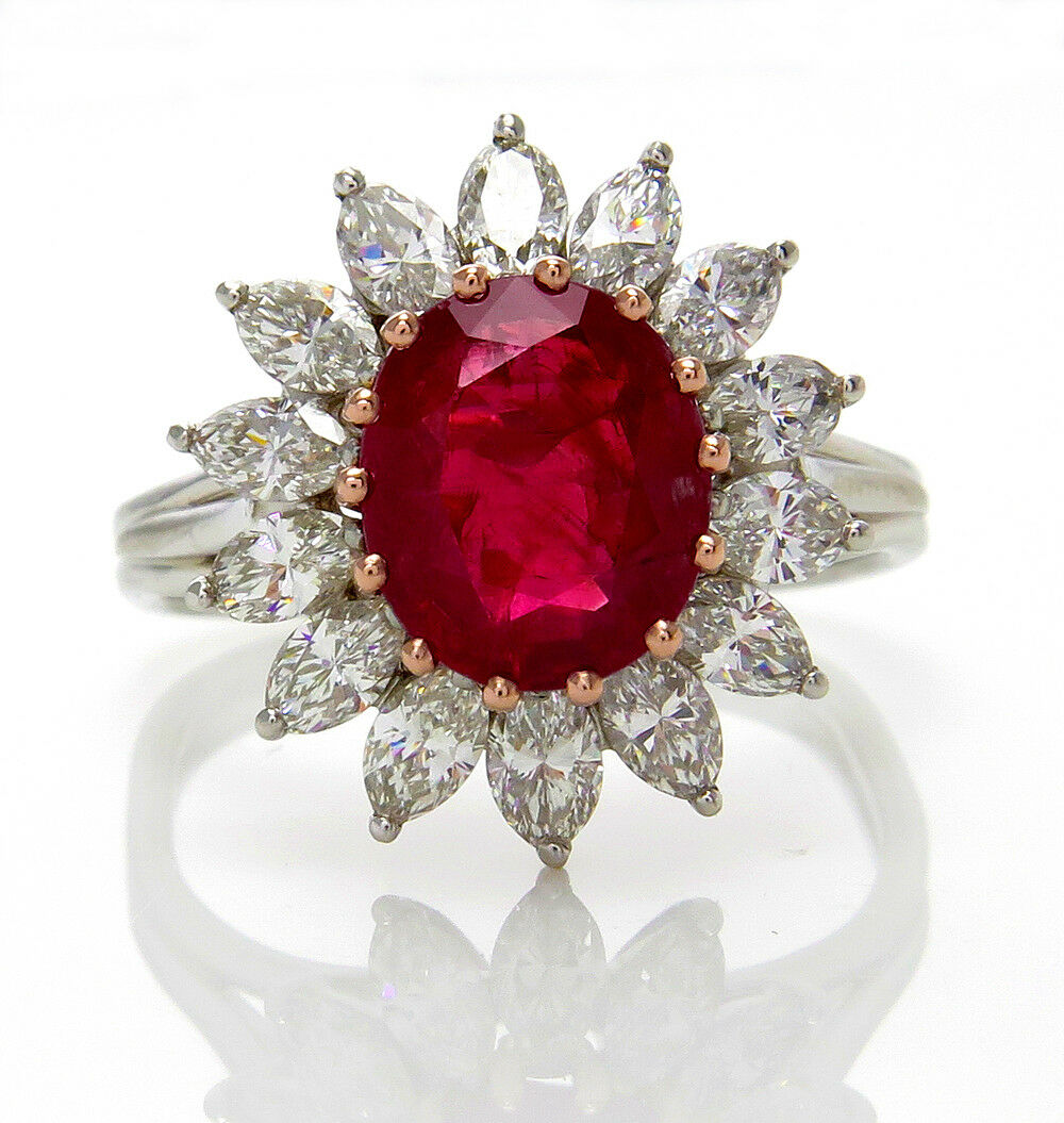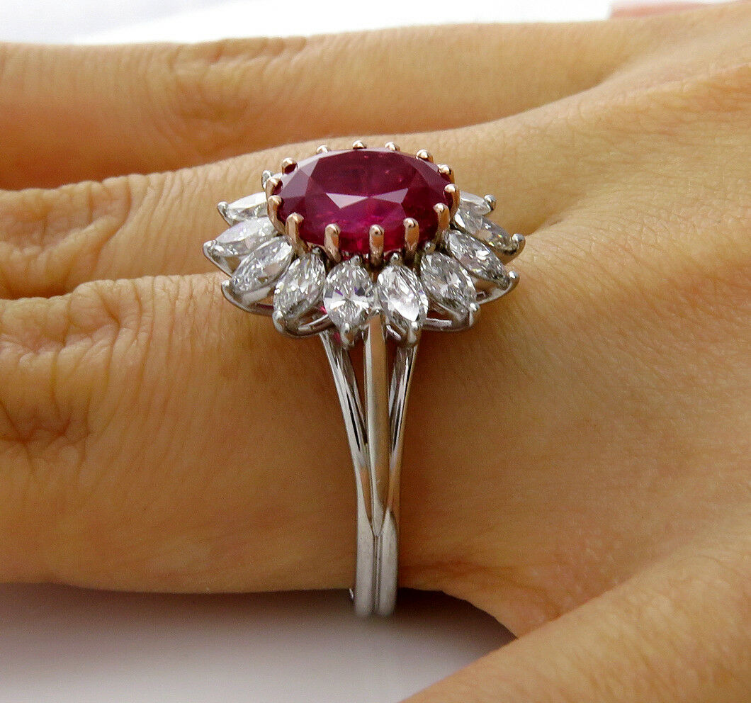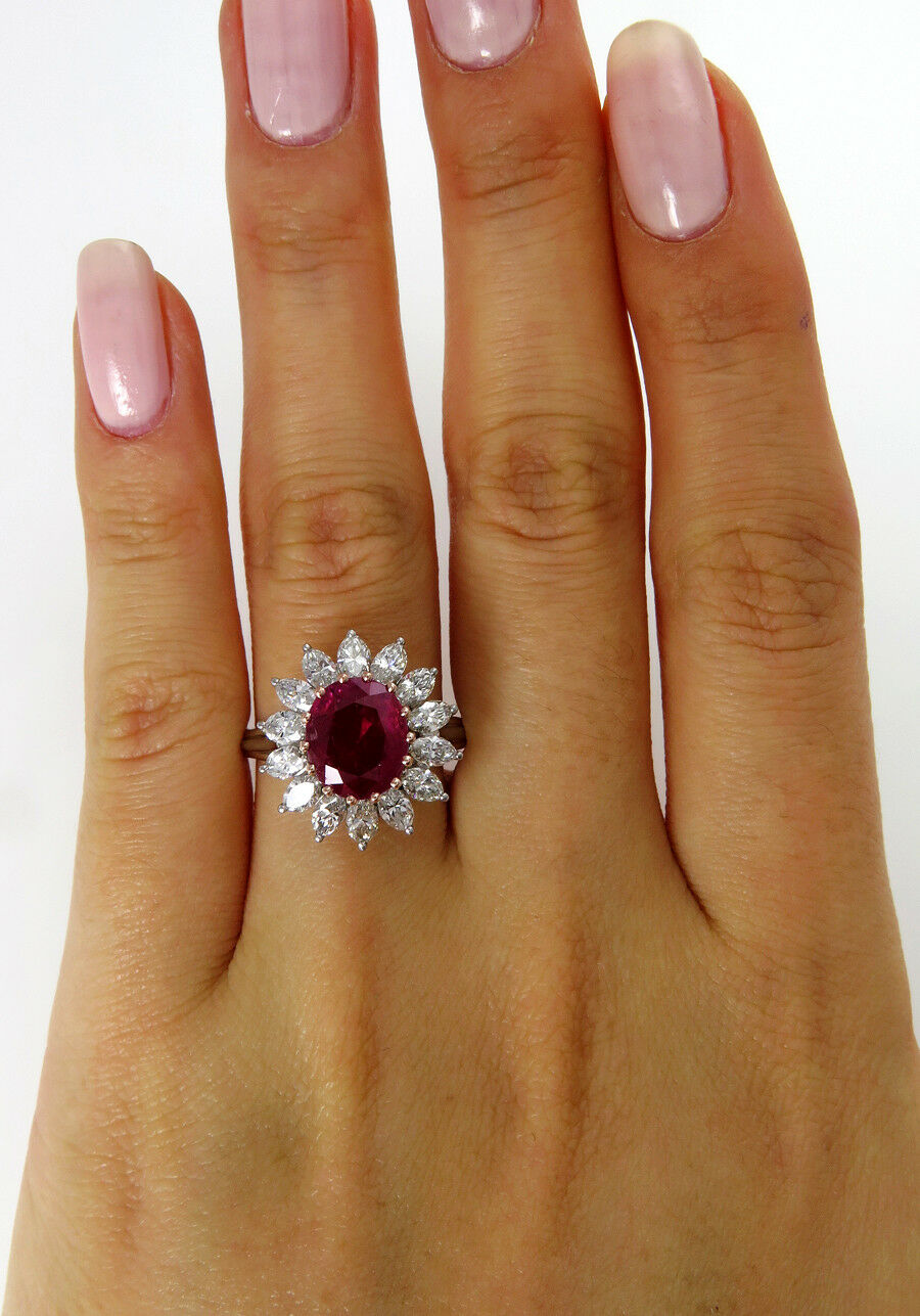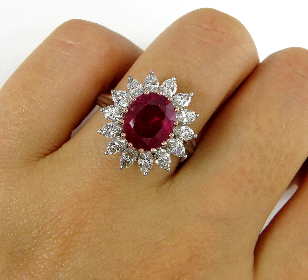 5Ct Oval Cut Pink Ruby Marquise Diamond Cocktail Floral Ring 14K White Gold Over