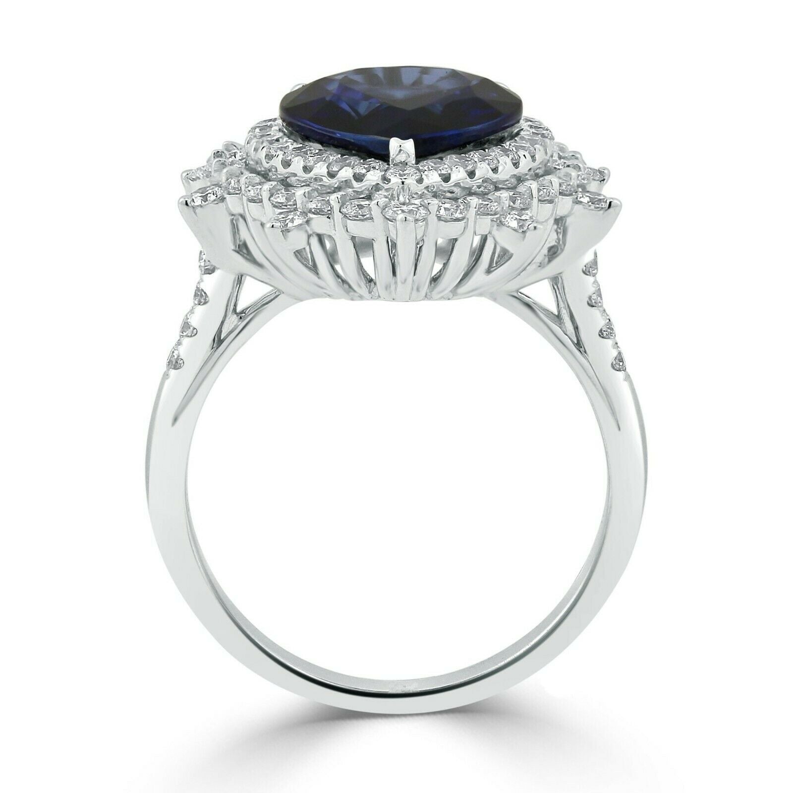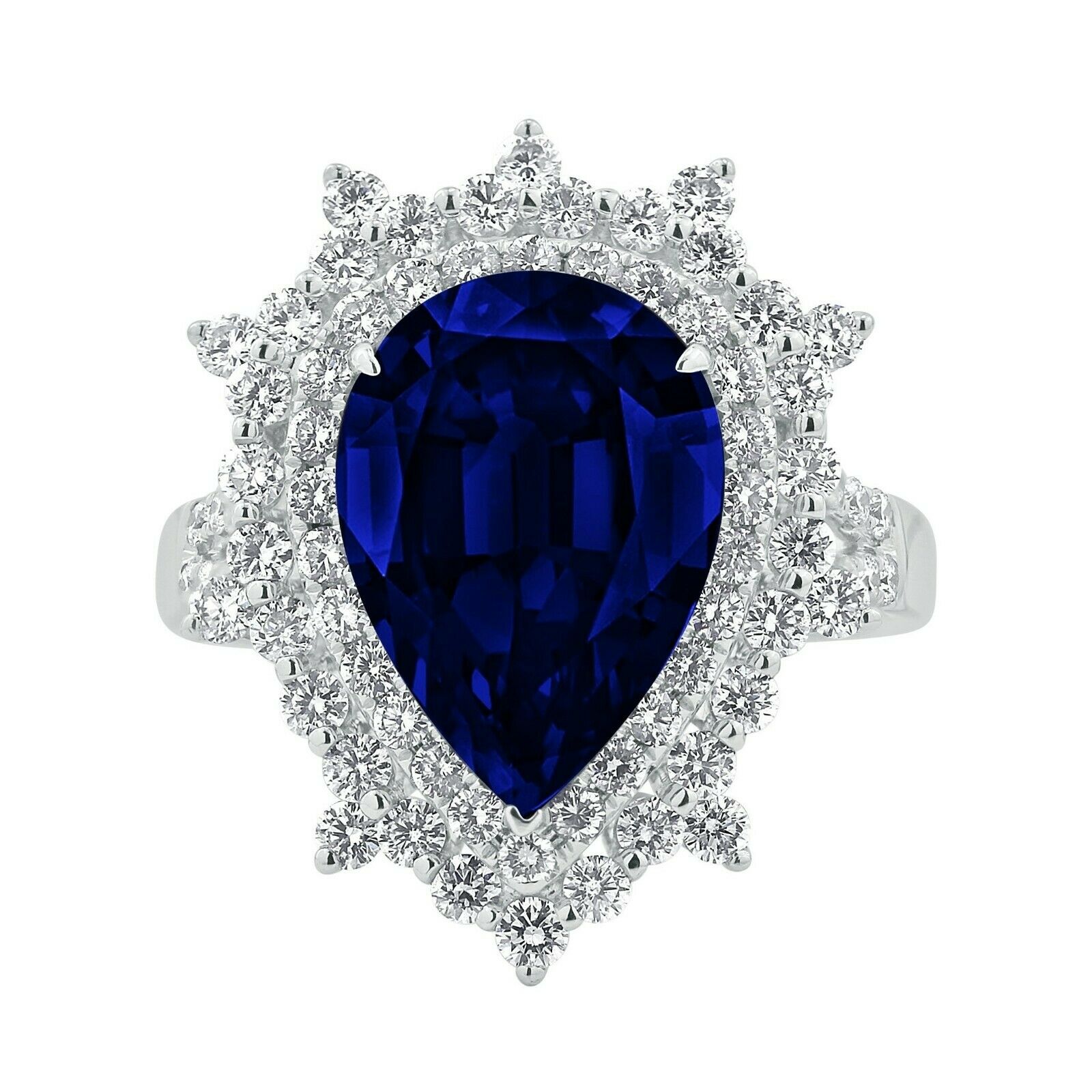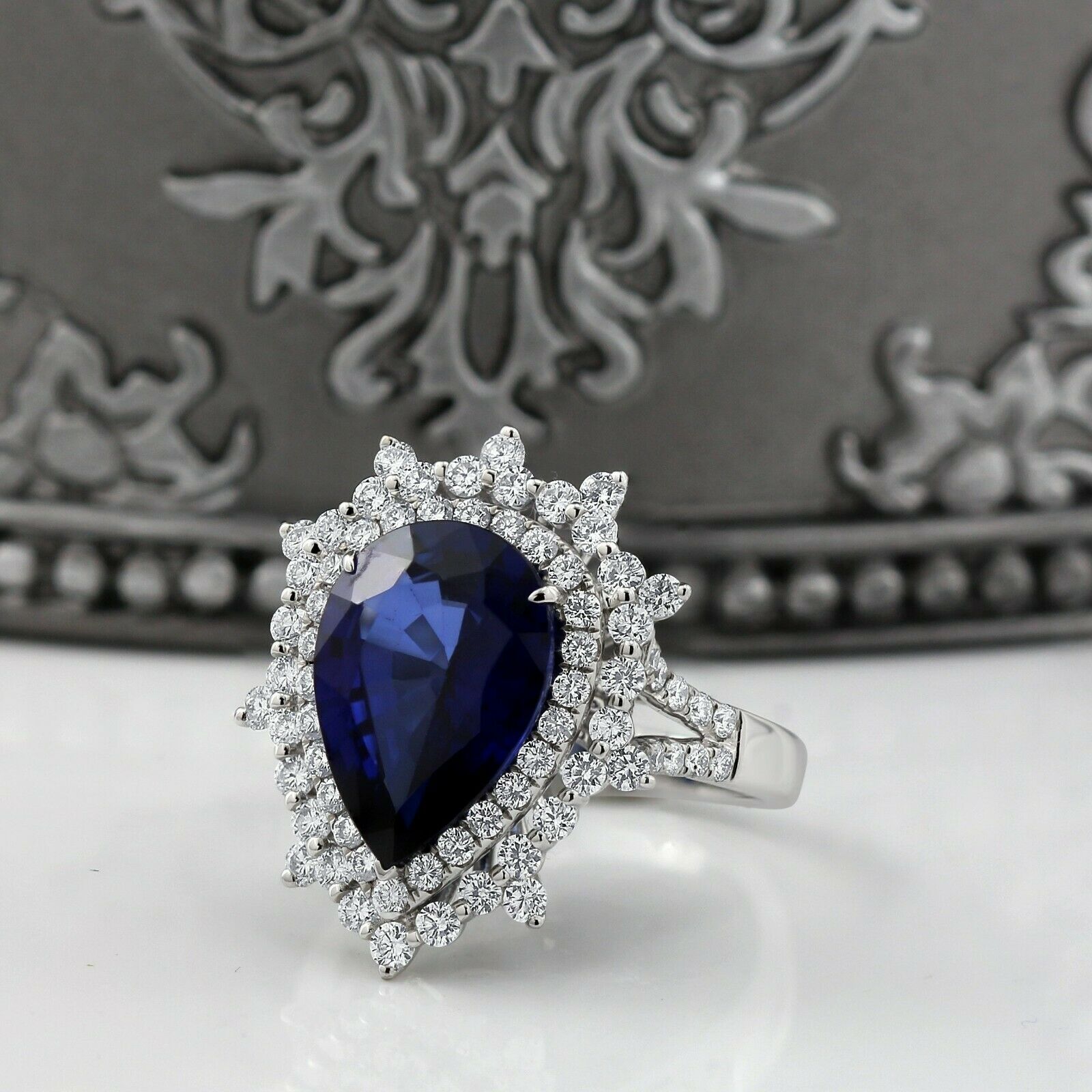 5Ct Pear Cut Blue Sapphire Vintage Cocktail Engagement Ring 18K White Gold Over
