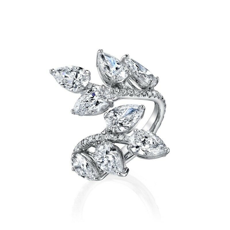 5ct Pear Cut Diamond Open ByPass Leaf Design Cocktail Ring 14k White Gold Finish