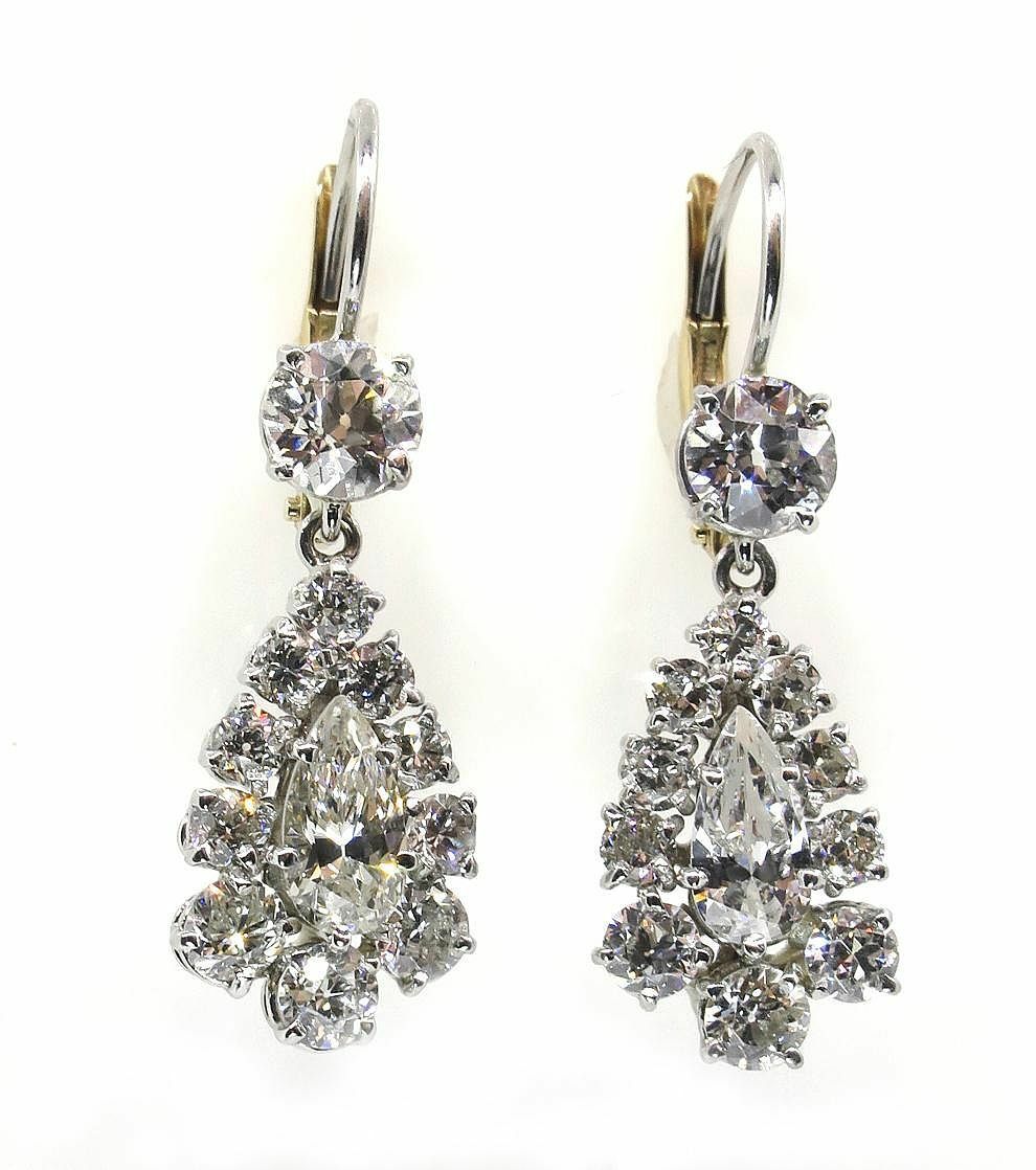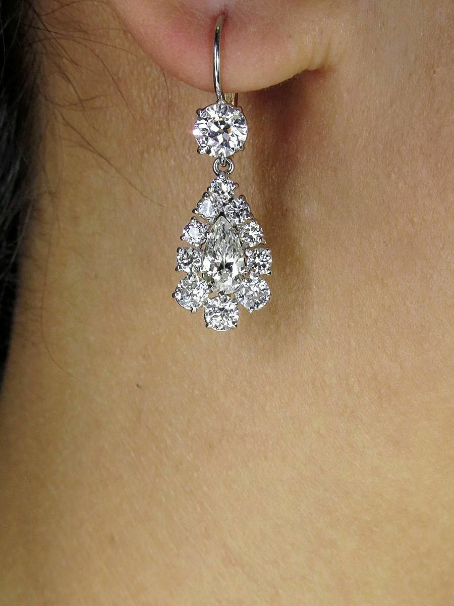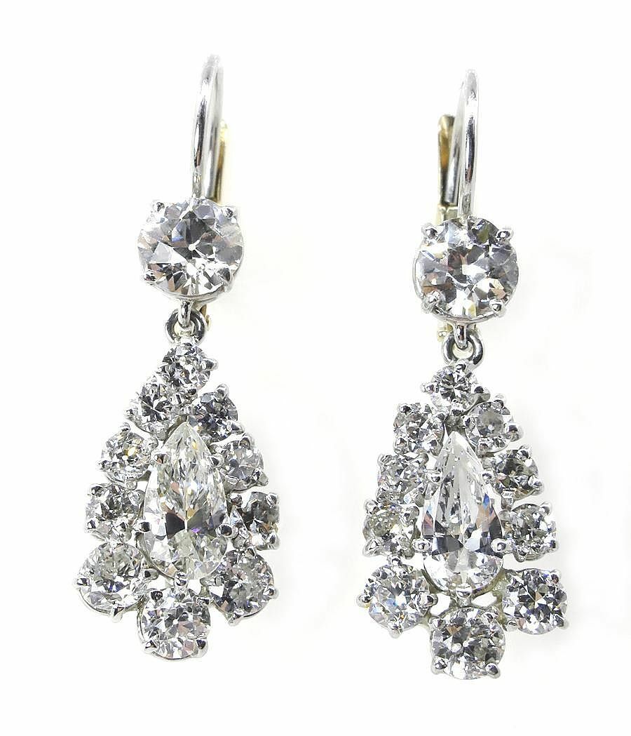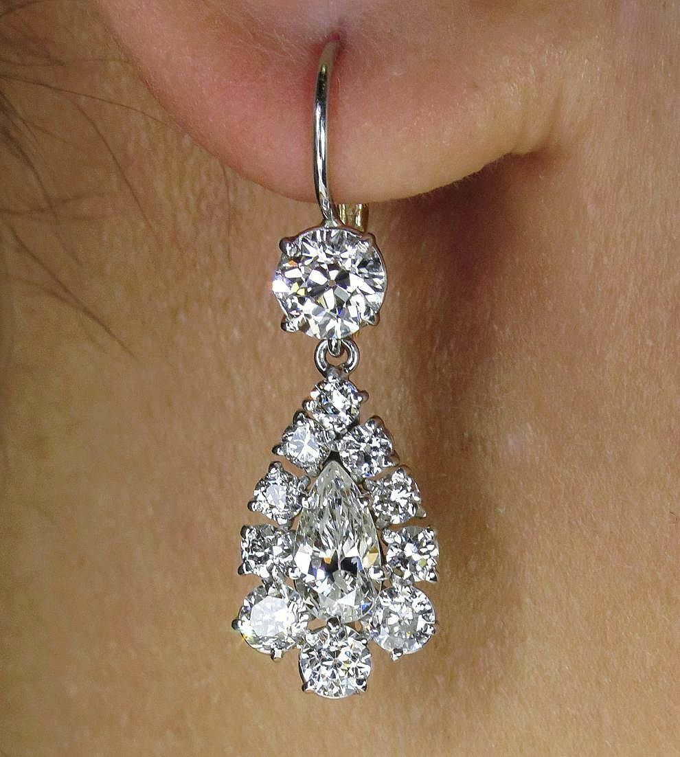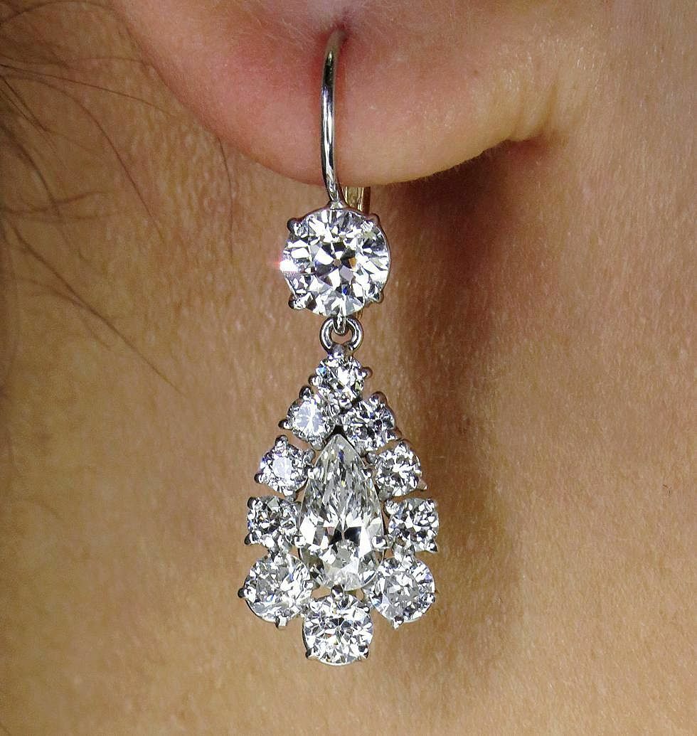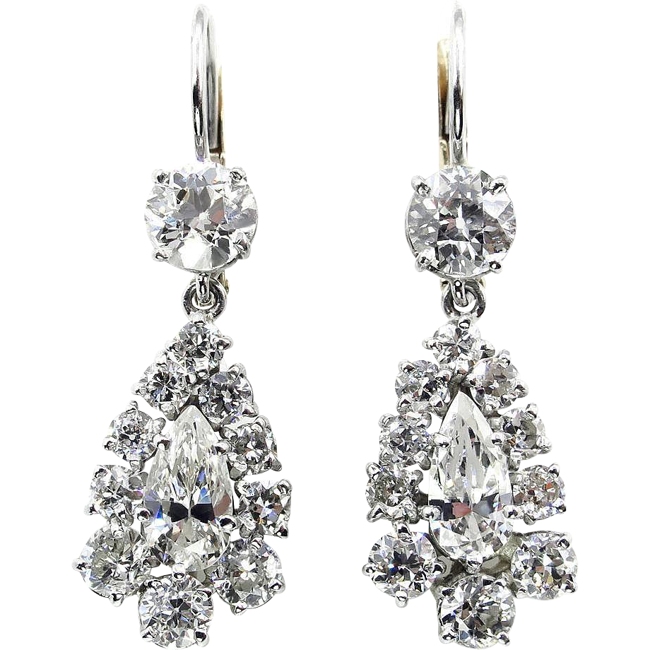 5Ct Pear Cut Diamond Round Halo Vintage Drop Earrings 14K White Gold Finish