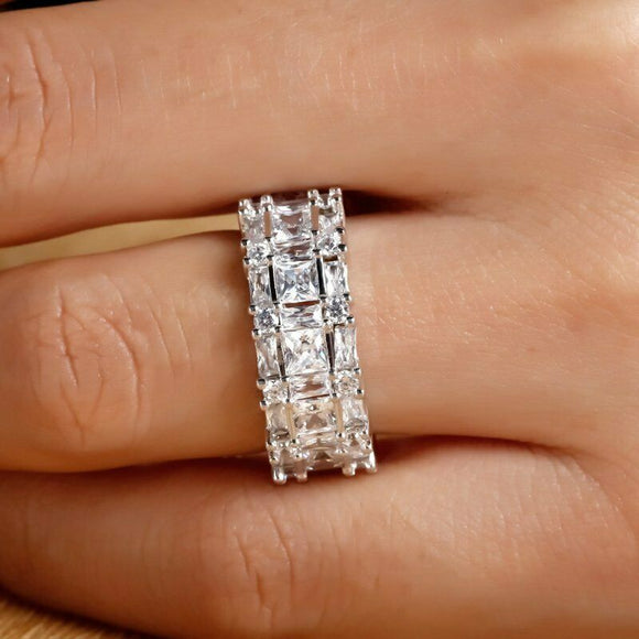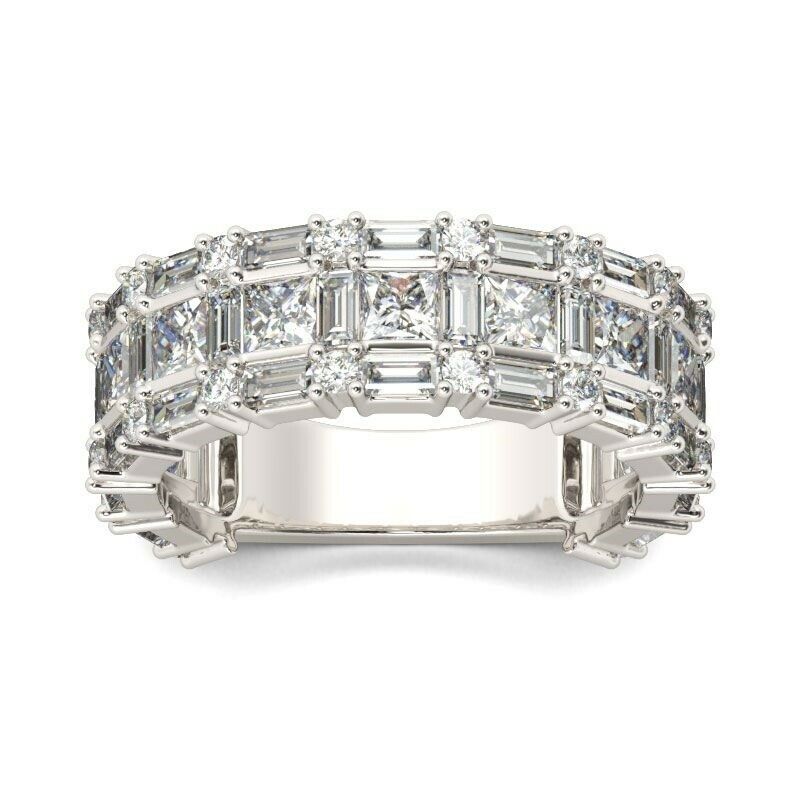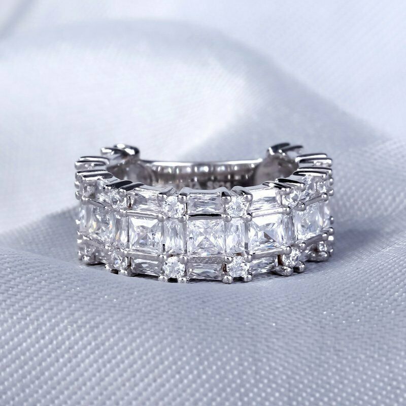 5Ct Princess Baguette Cut Diamond Gatsby Wedding Band Ring 14K White Gold Finish