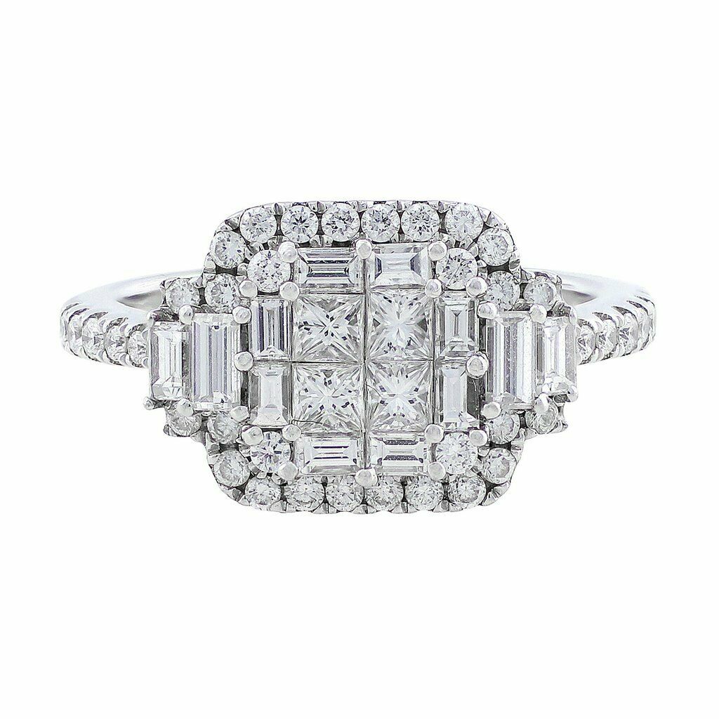 5Ct Princess Baguette Cut Diamond Halo Cluster Cocktail Ring 14K White Gold Over