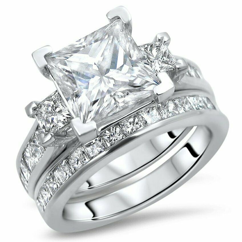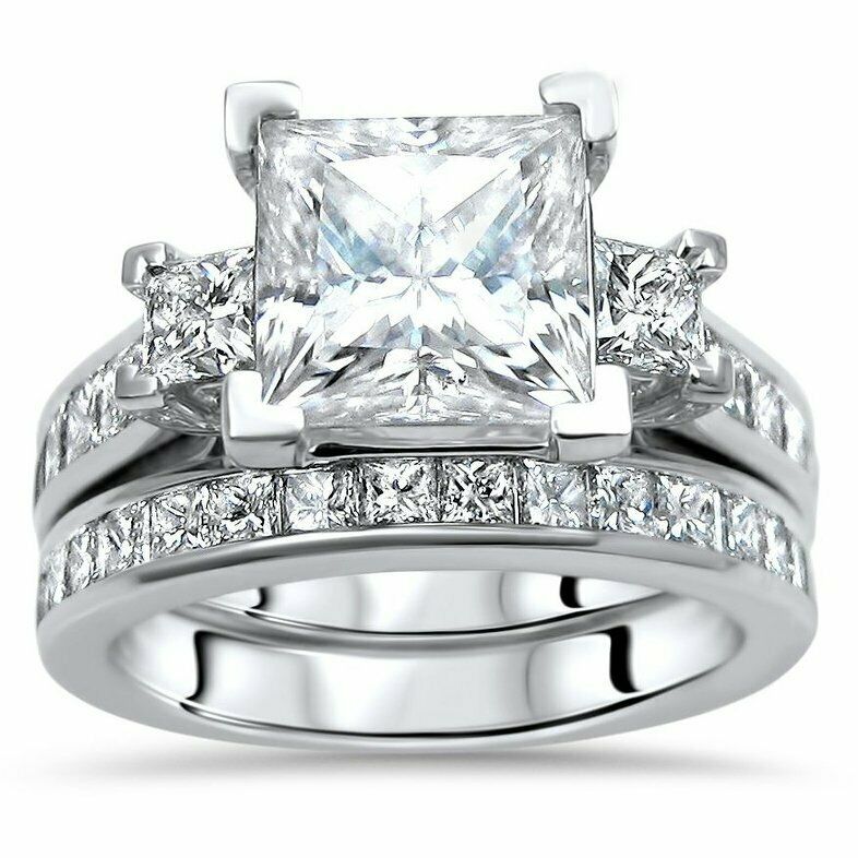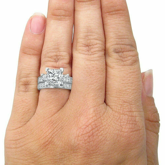 5Ct Princess Cut Diamond Bridal Set Band Engagement Ring 18K White Gold Finish
