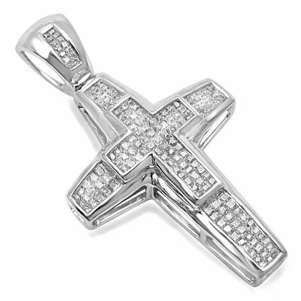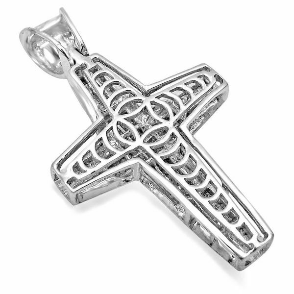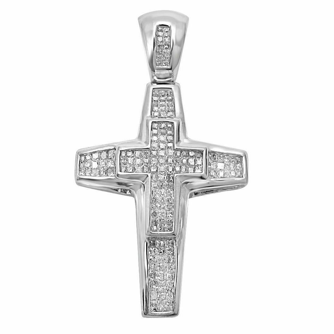 5ct Princess Cut Diamond Double Cross God Pendant 14k White Gold Finish NO CHAIN