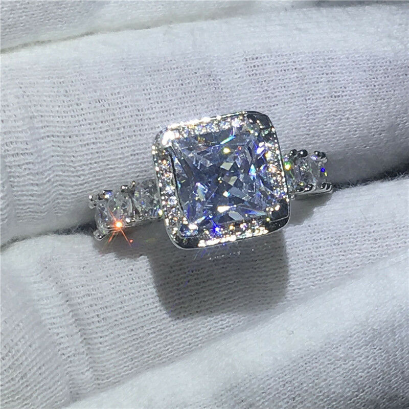 5Ct Princess Diamond Iced Gatsby Cocktail Engagement Ring 18K White Gold Finish
