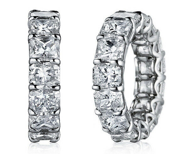5Ct Radiant Cut Diamond Iced Full Eternity Wedding Band 14K White Gold Finish