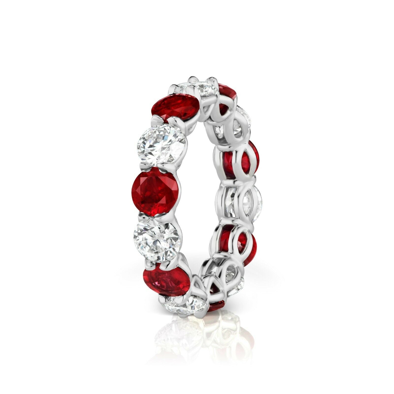 5Ct Round Cut Alternate Pink Ruby Diamond Eternity Band 14K White Gold Finish