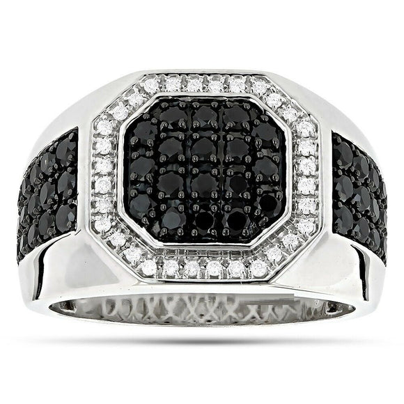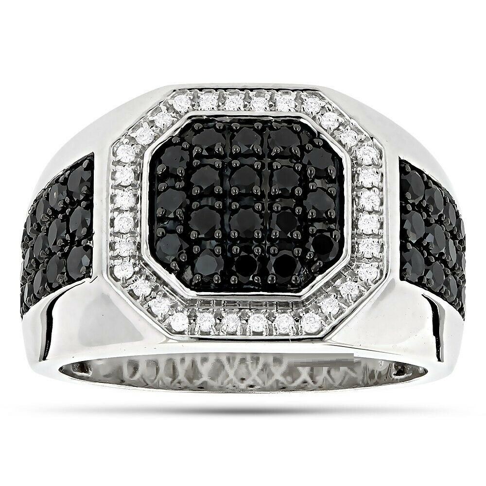 5Ct Round Cut Black Diamond Octagon Halo Men Engagement Ring 14K White Gold Over