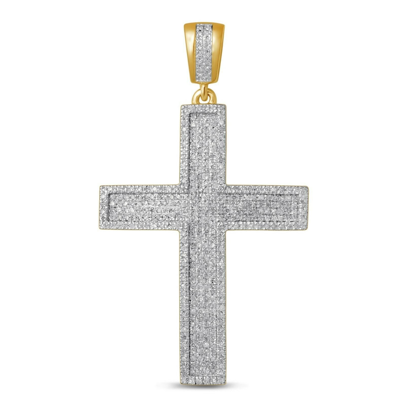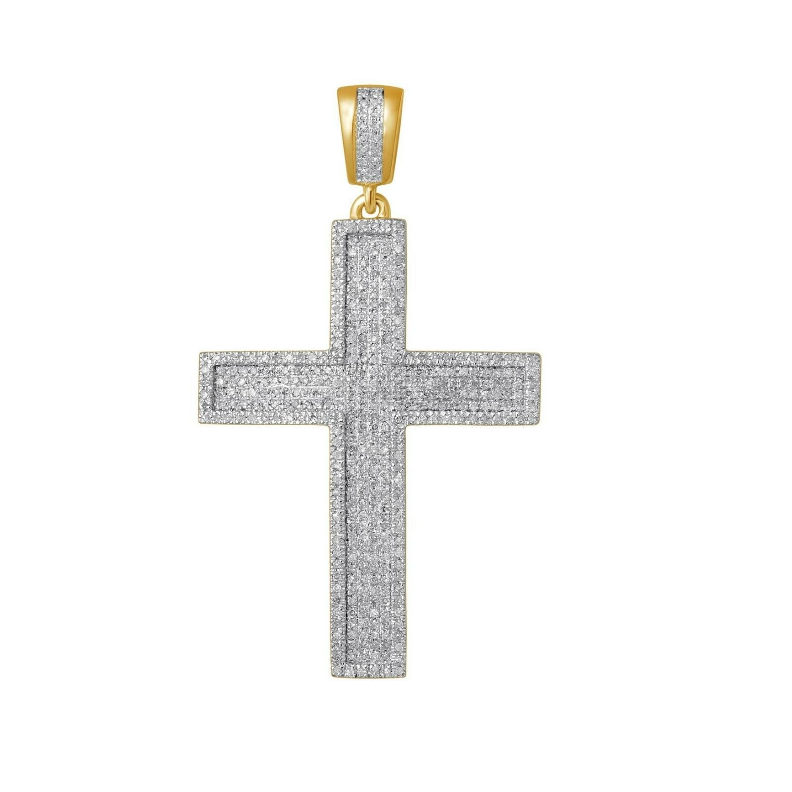 5ct Round Cut Diamond Hip Hop Iced Cross Pendant 14k Yellow Gold Finish NO CHAIN