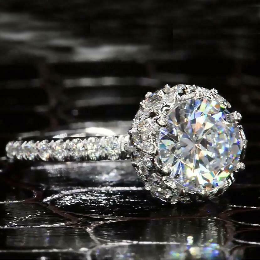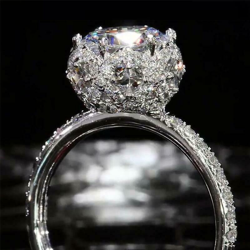 5Ct Round Cut Diamond Iced Queens Cocktail Engagement Ring 14K White Gold Finish