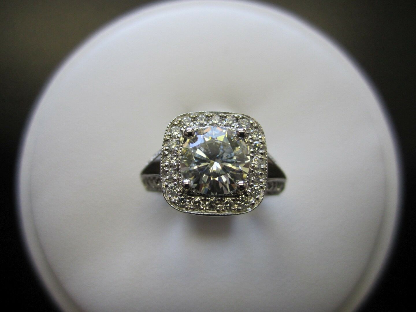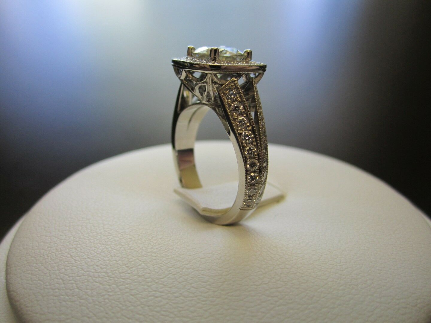5Ct Round Cut Diamond Milgrain Vintage Halo Engagement Ring 18K White Gold Over