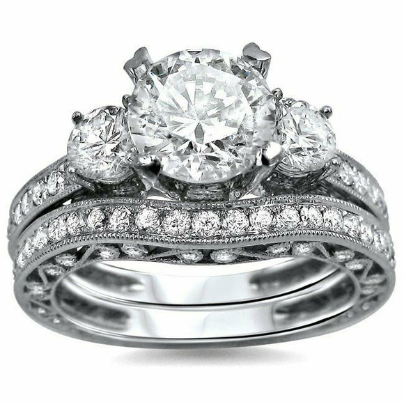 5Ct Round Cut Diamond Vintage Bridal Set Engagement Ring 14K White Gold Finish