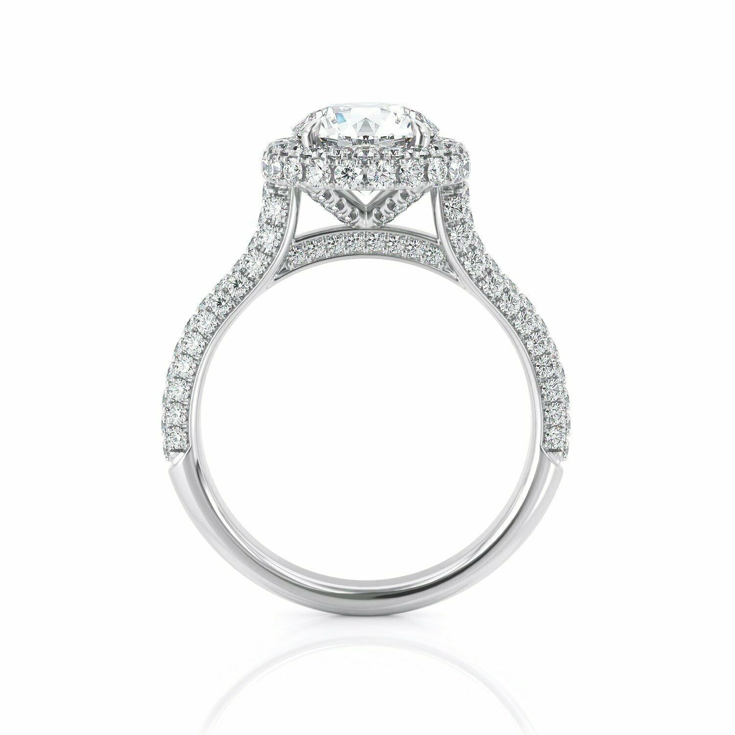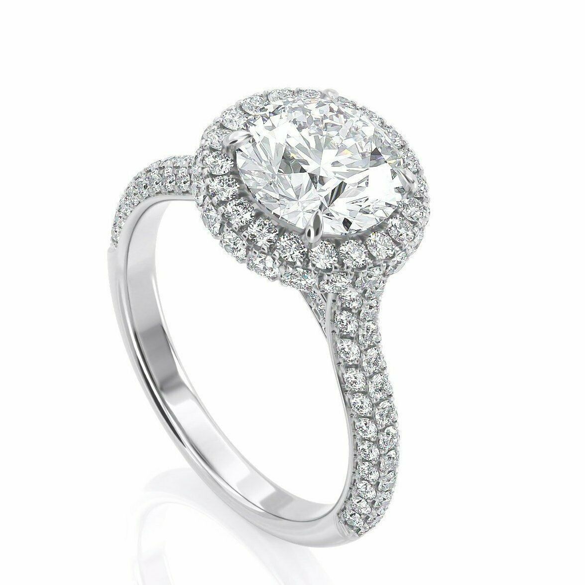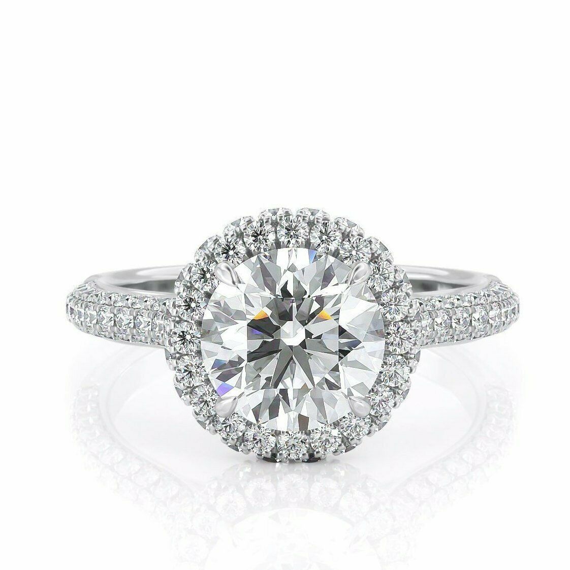 5Ct Round Cut DVVS1 Diamond Accent Iced Halo Engagement Ring 14K White Gold Over