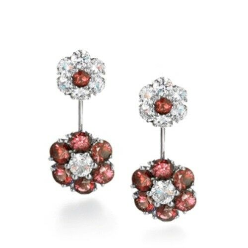 5Ct Round Cut Red Garnet Dual Floral Drop Earrings Women 14K White Gold Finish