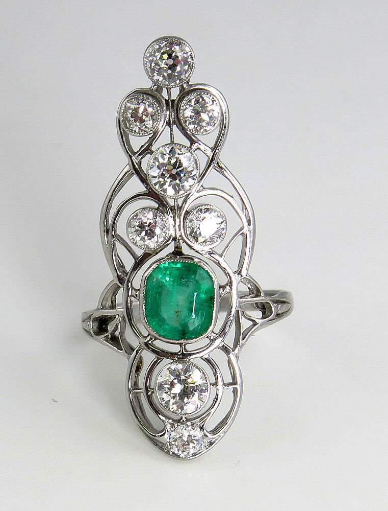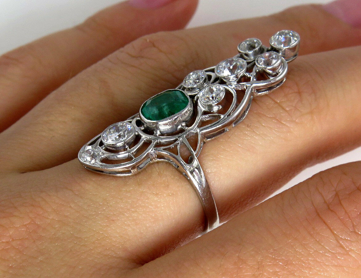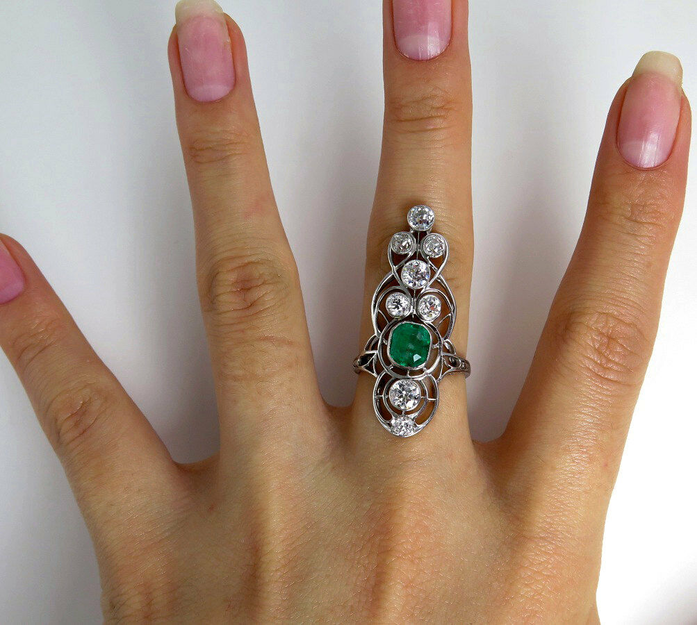 6Ct Cushion Cut Green Emerald Diamond Party Cocktail Ring 14K White Gold Finish