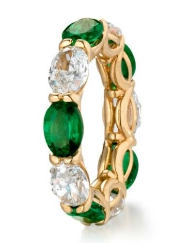 6Ct Oval Cut Green Emerald Diamond Eternity Wedding Band 14K Yellow Gold Finish