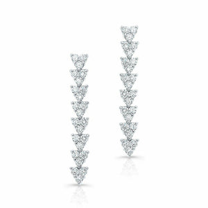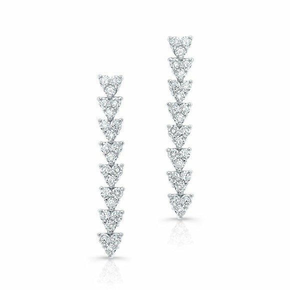 6Ct Round Cut VVS1 Diamond V Shaped Vertical Drop Earrings 14K White Gold Finish