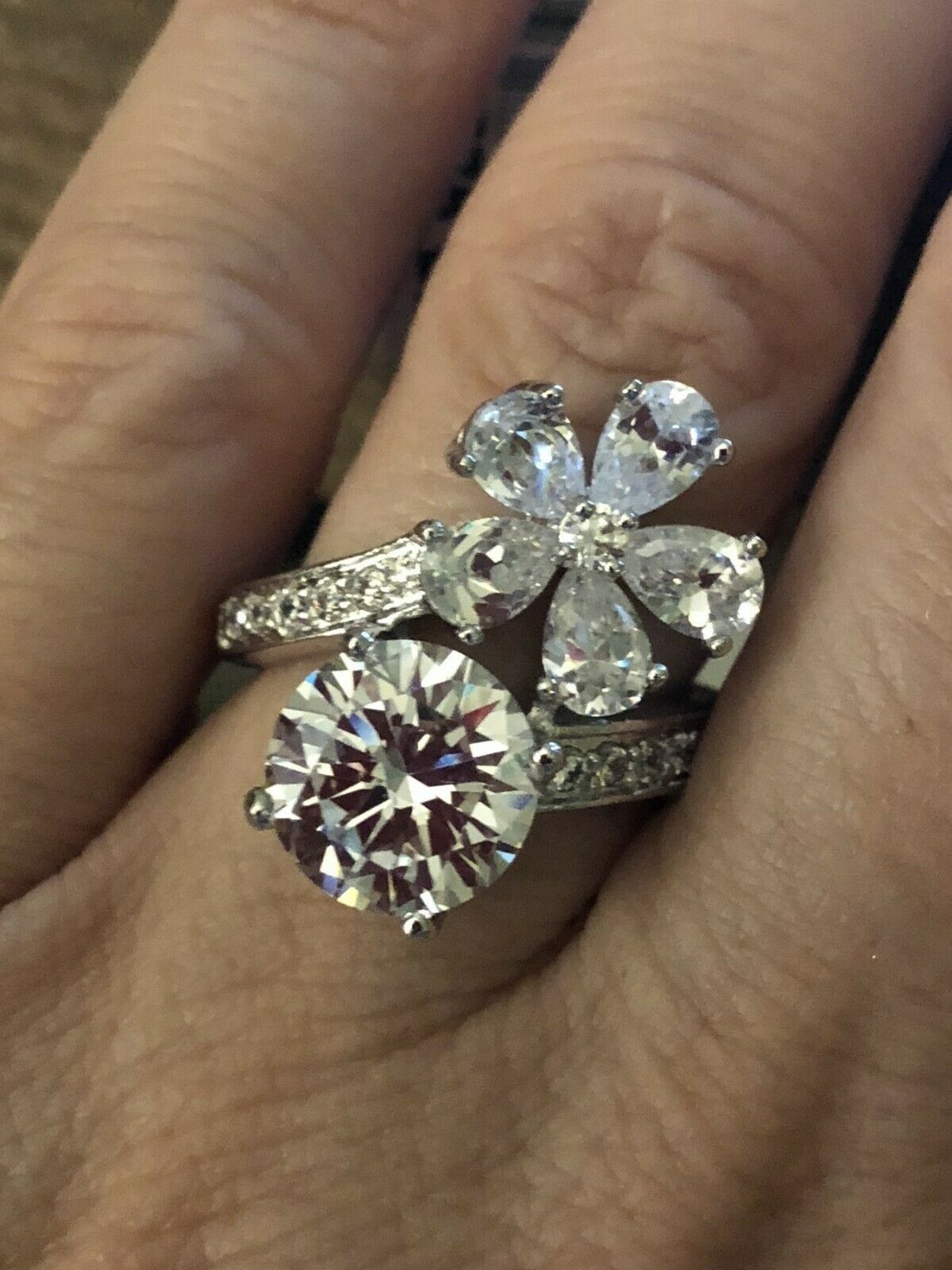 6Ct Round Pear Cut Diamond Floral Cocktail Engagement Ring 14K White Gold Finish