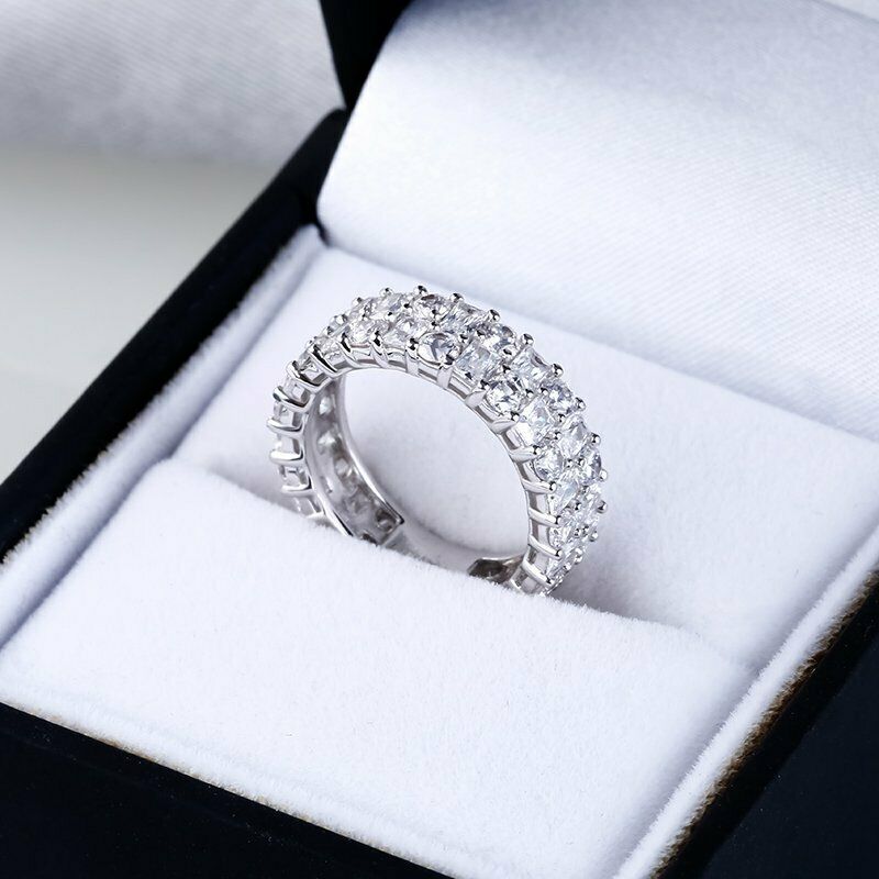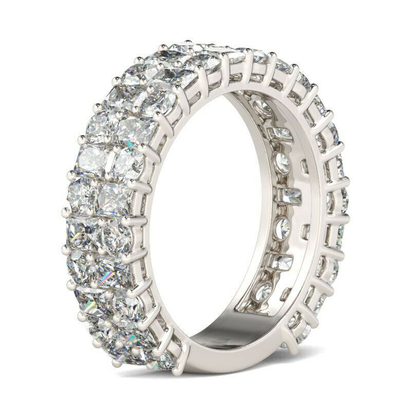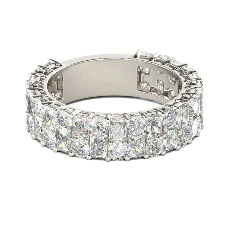 6Ct Round Radiant Cut Diamond Dual Row Wedding Ring Band 14K White Gold Finish