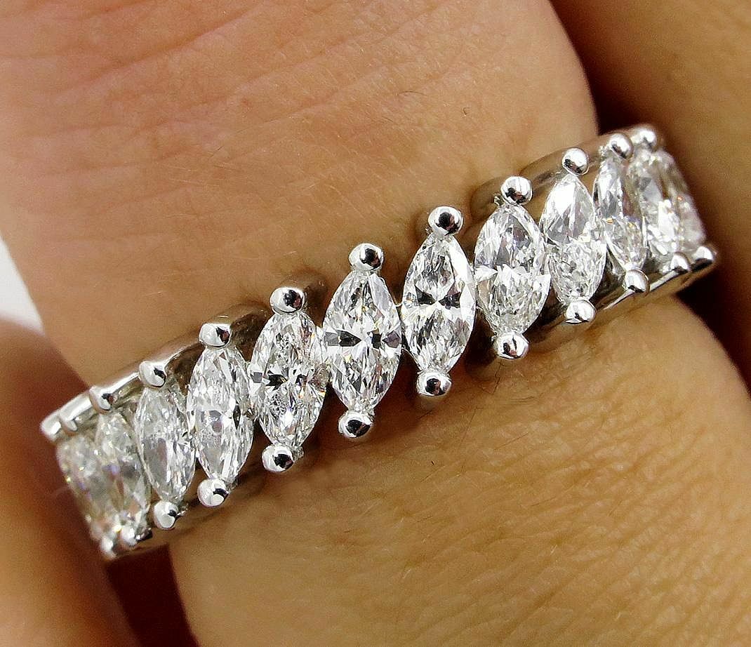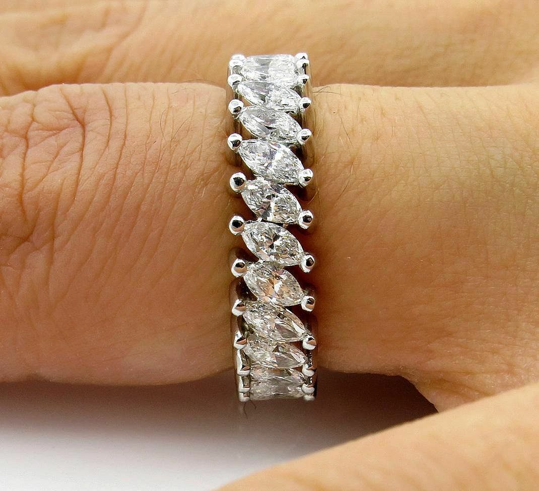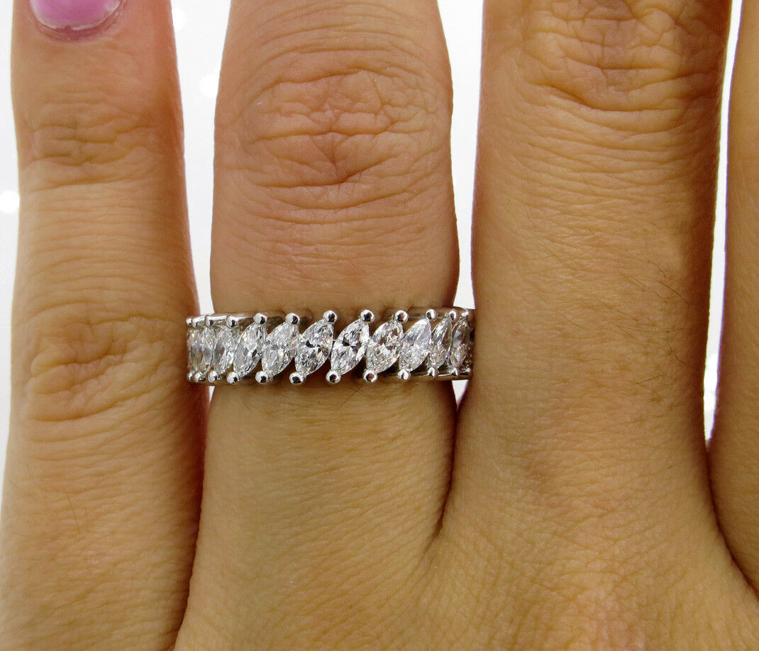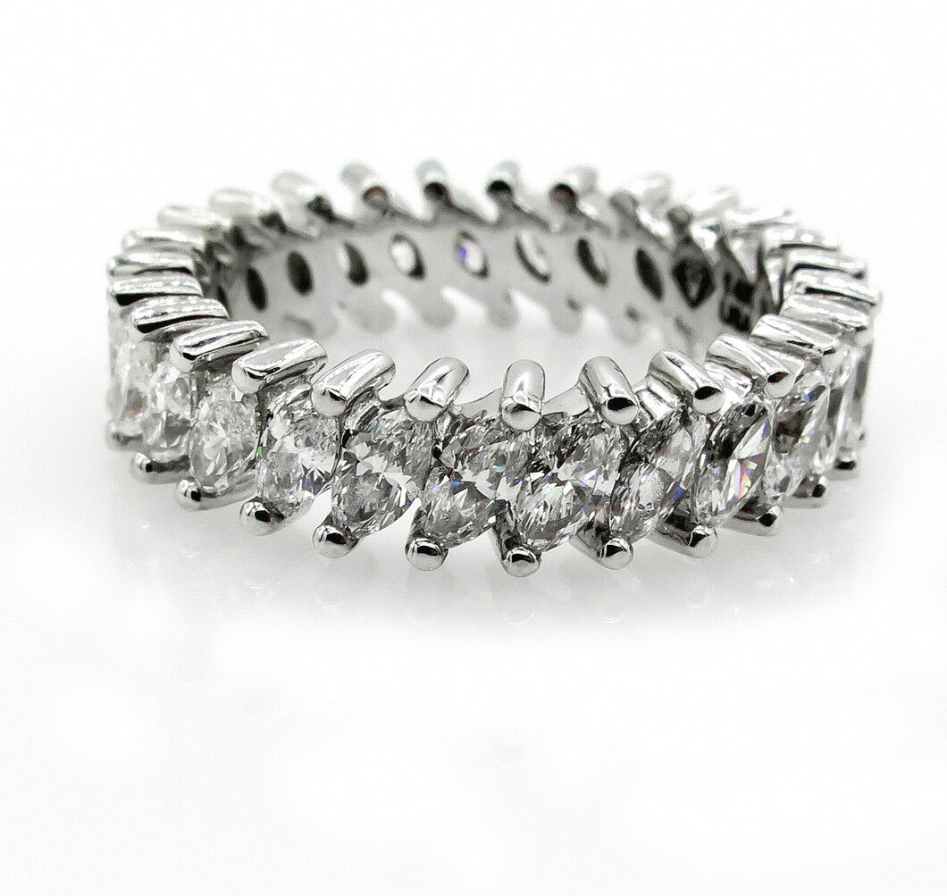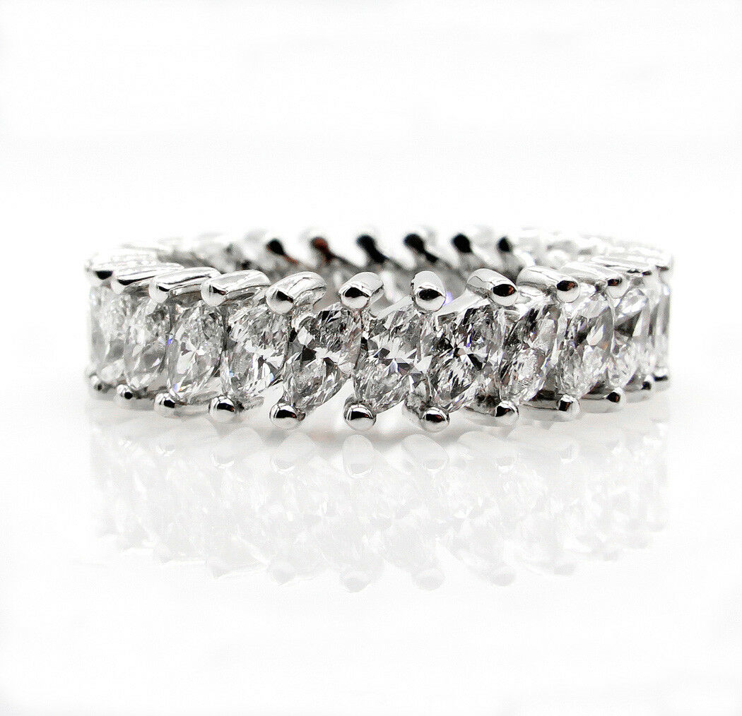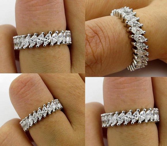 7Ct Marquise Cut VVS1 Diamond Unique Eternity Wedding Band 14K White Gold Finish