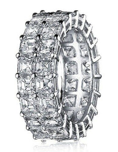 7Ct Princess Cut Diamond Iced Two Row Eternity Wedding Band 14K White Gold Over