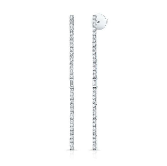 8Ct Round Baguette Diamond Thin Vertical Drop Earrings 14K White Gold Finish