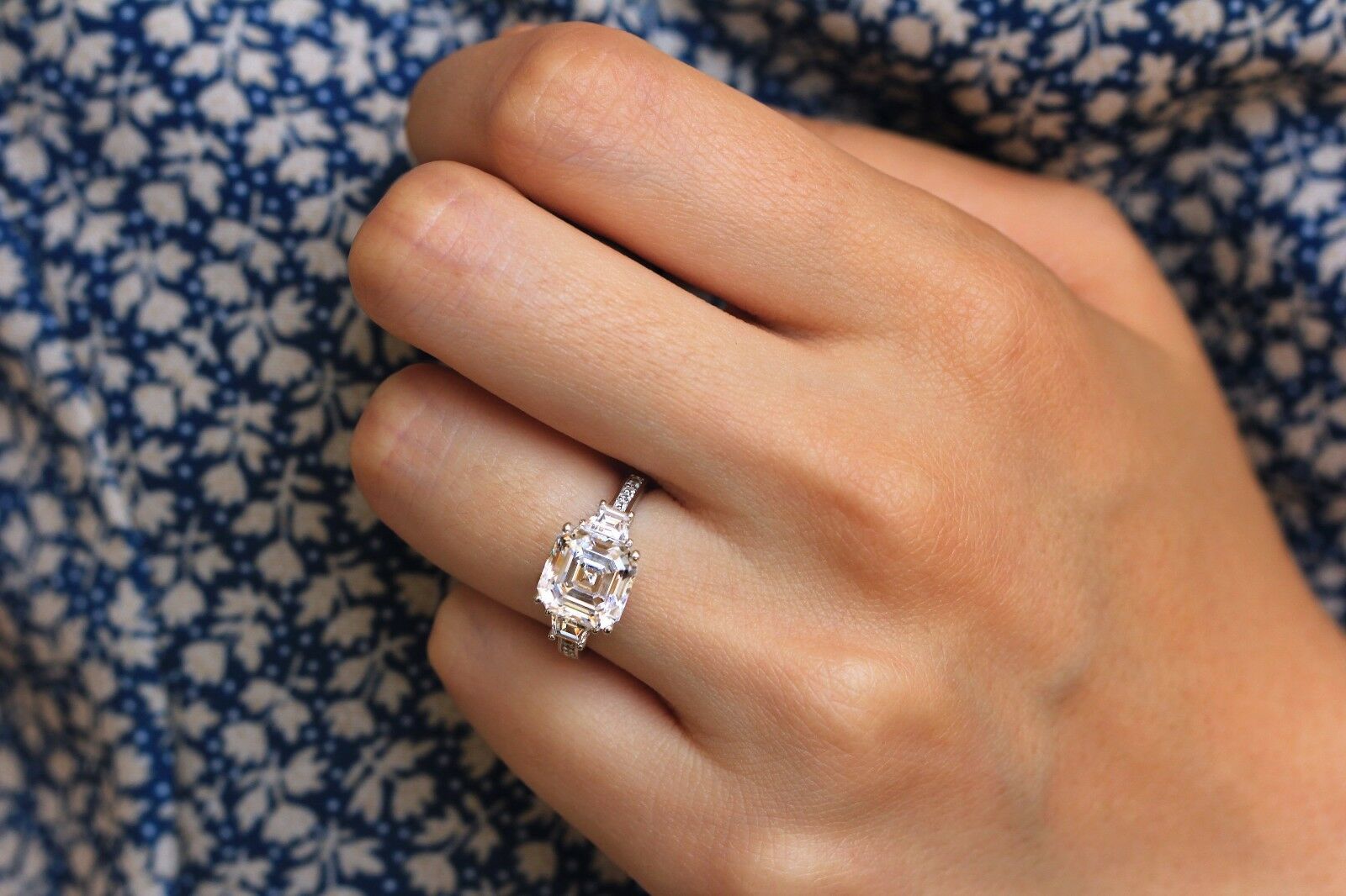 Accents Solitaire Engagement Ring 2.5ct Asscher Cut Diamond 14k WhiteGold Finish