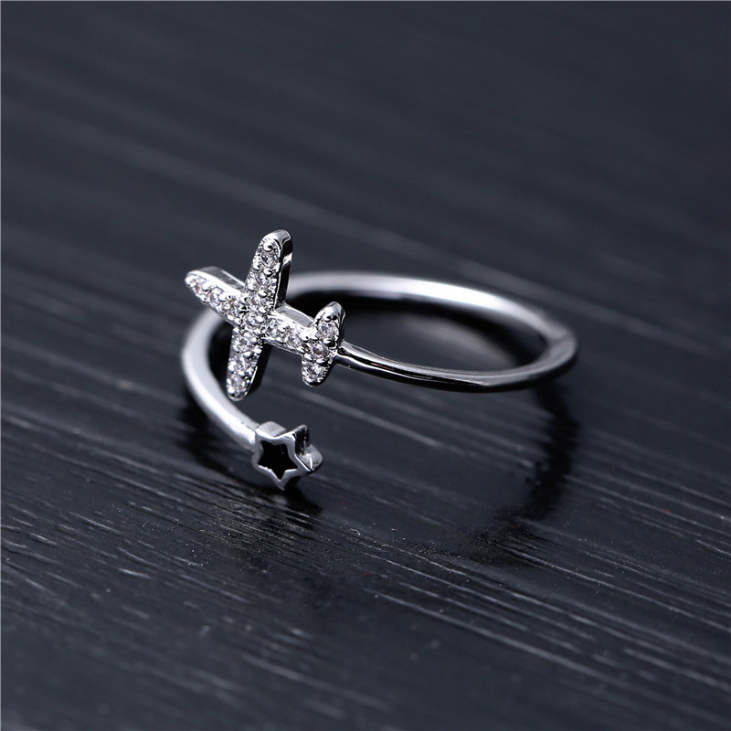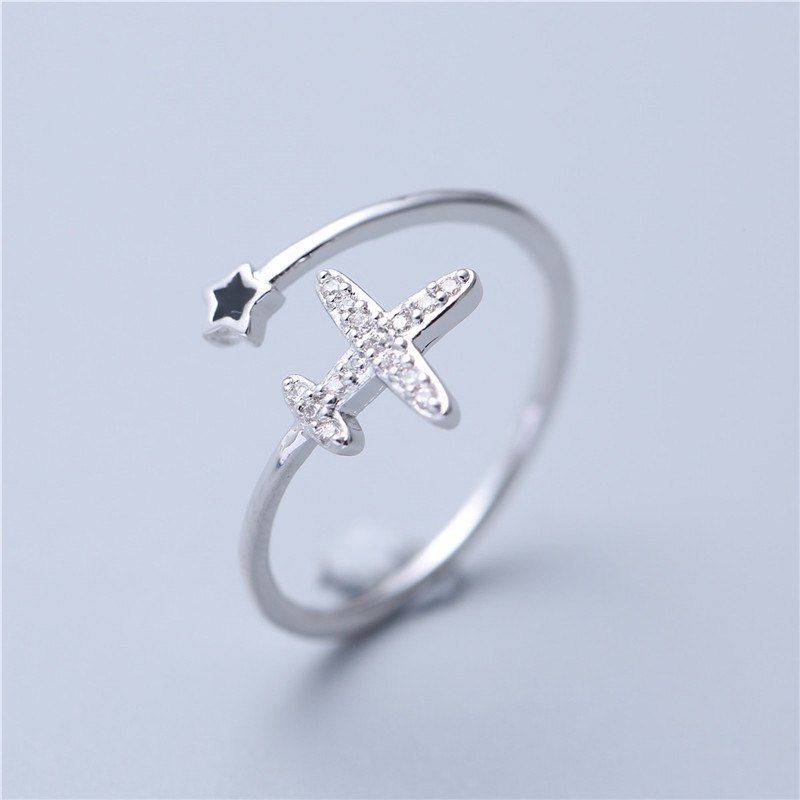 Aeroplane Design Engagement Ring 1.2ct Round Cut Diamond 14k White Gold Finish