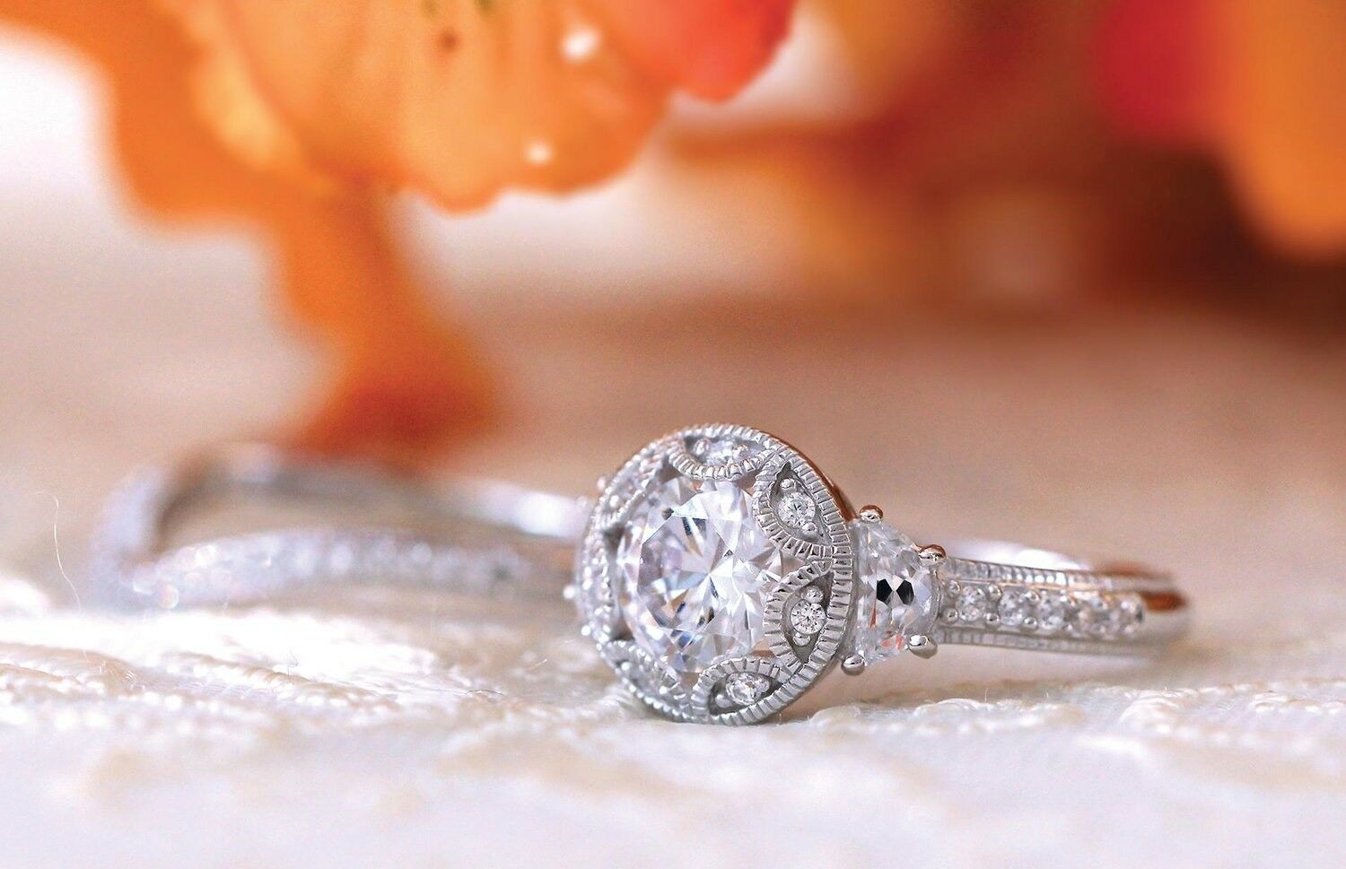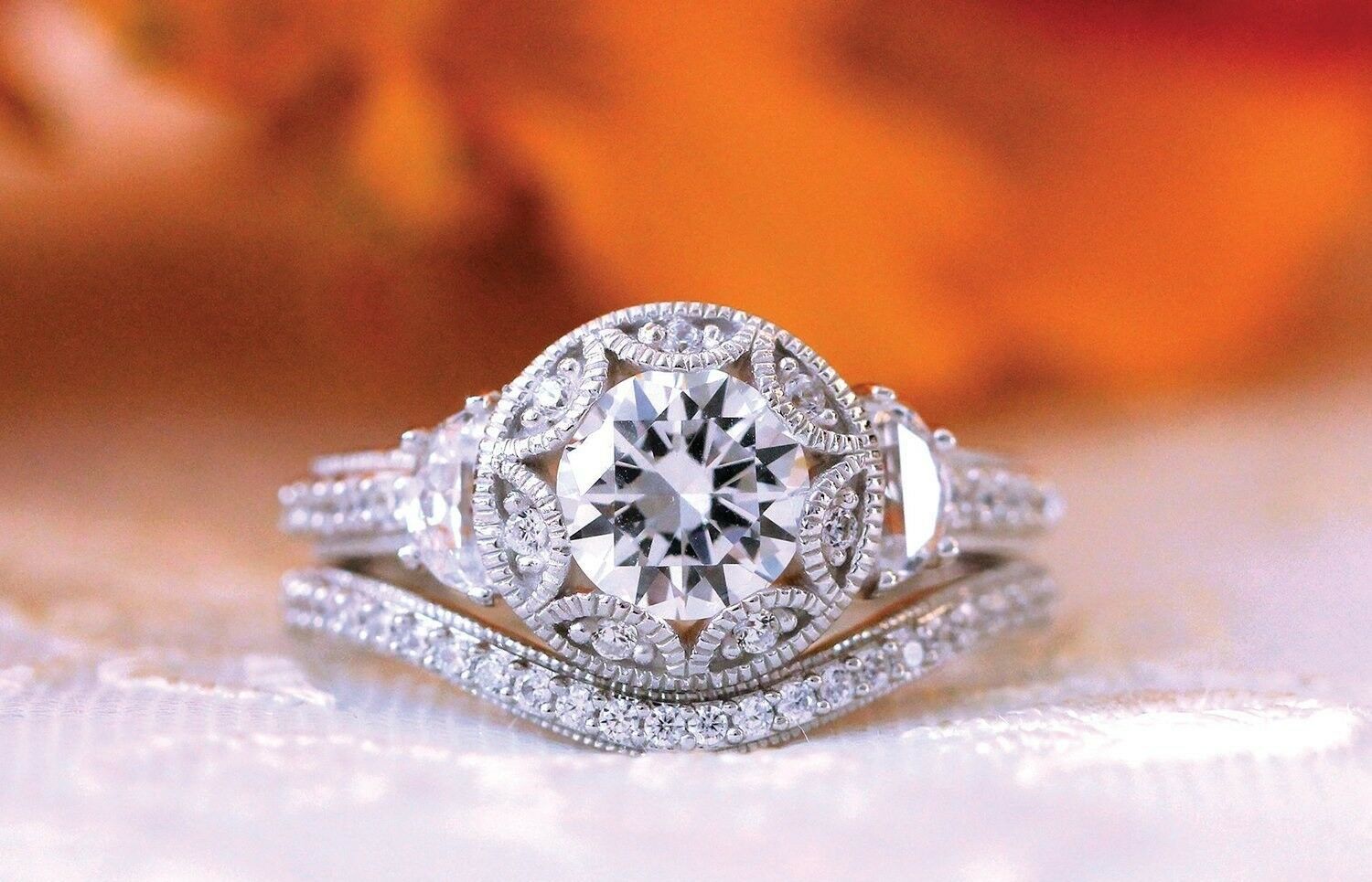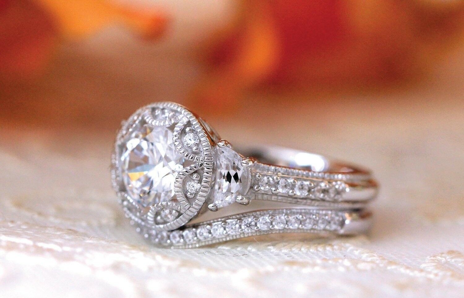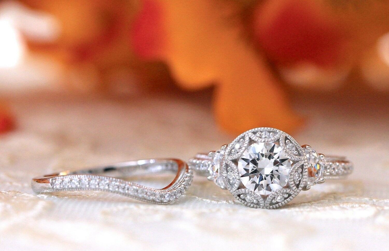 Art Deco Bridal Set Engagement Ring 2ct Round Cut Diamond 14k White Gold Finish